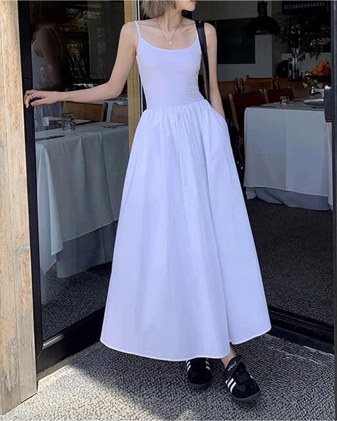 #ロングワンピース #キャミソールワンピース #ssホワイトワンピース #ssワンピース #ssブラックワンピース #バックオープン #背中開き #レビュー