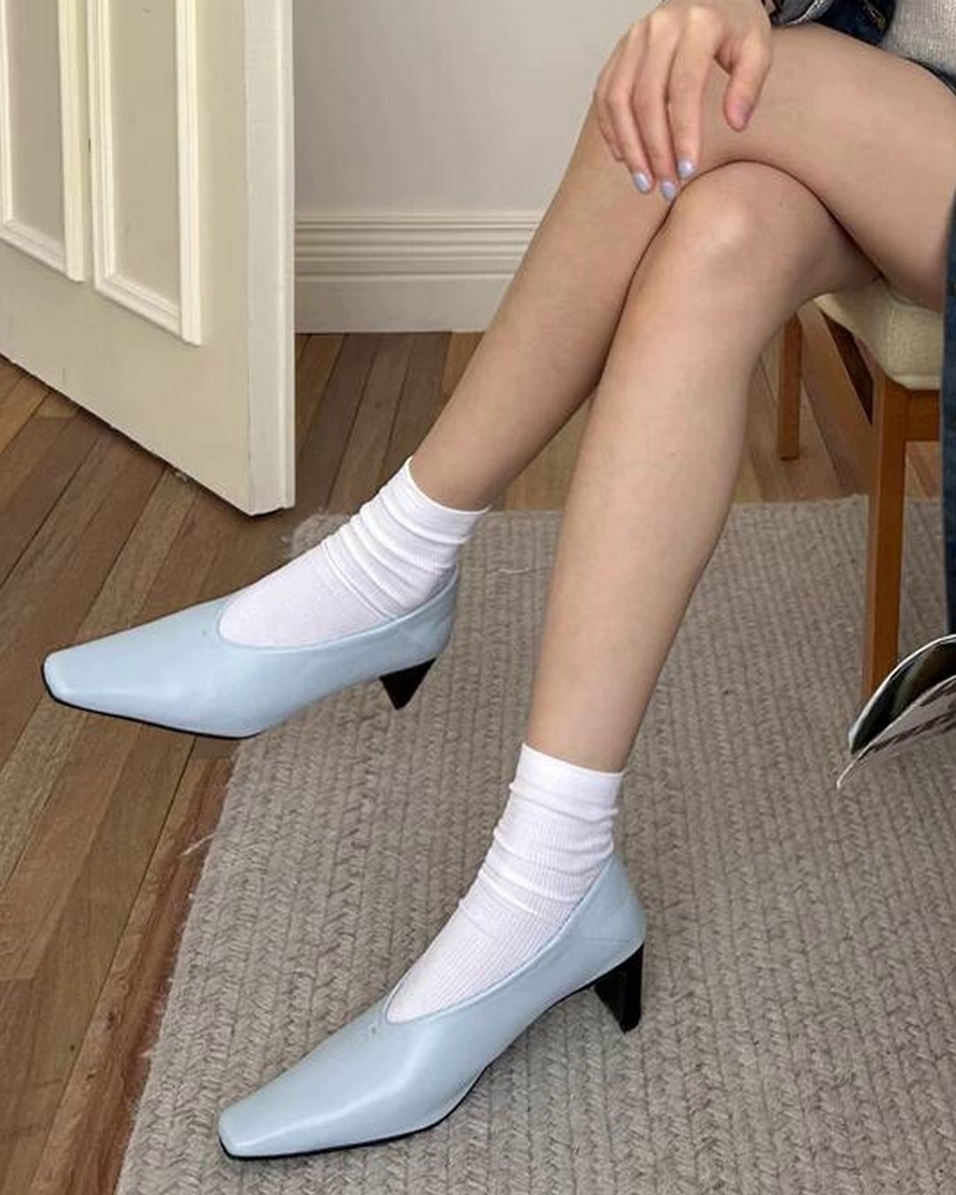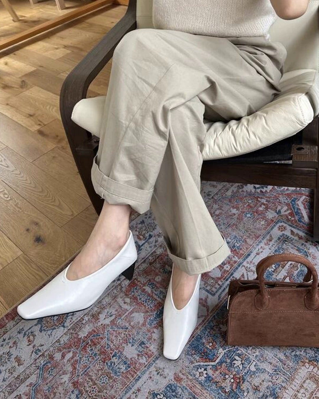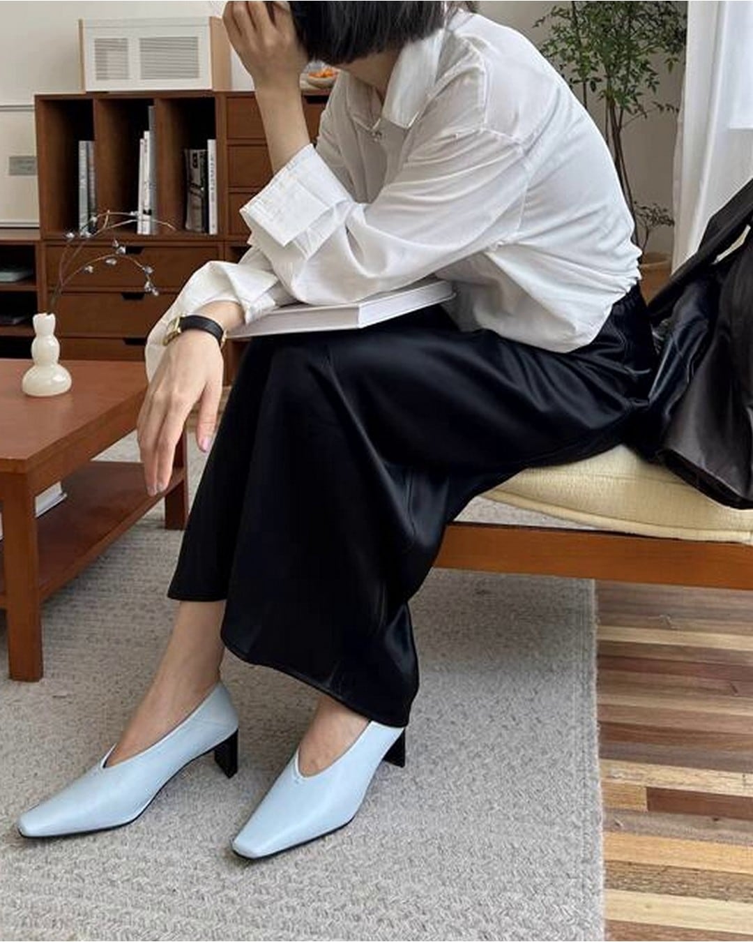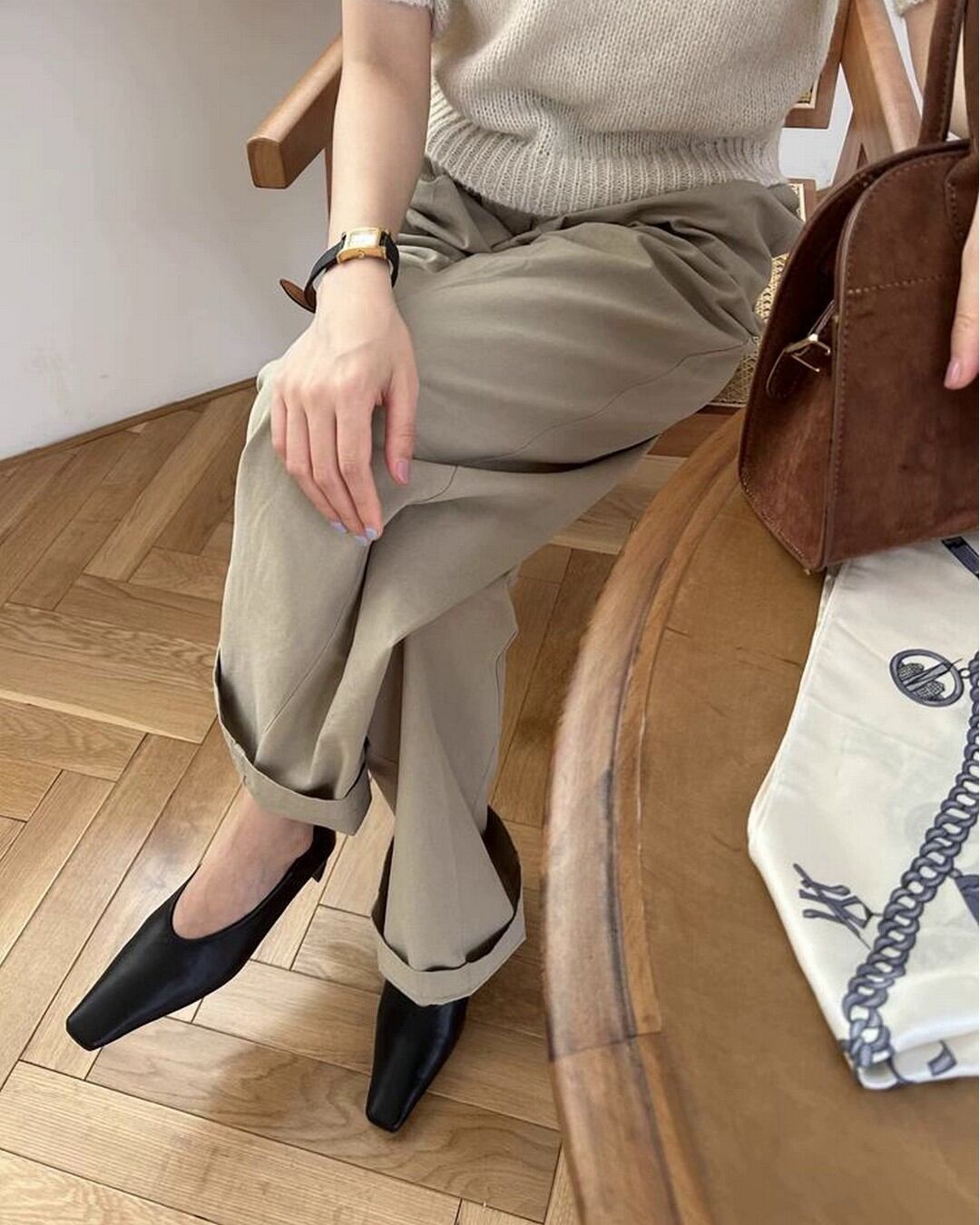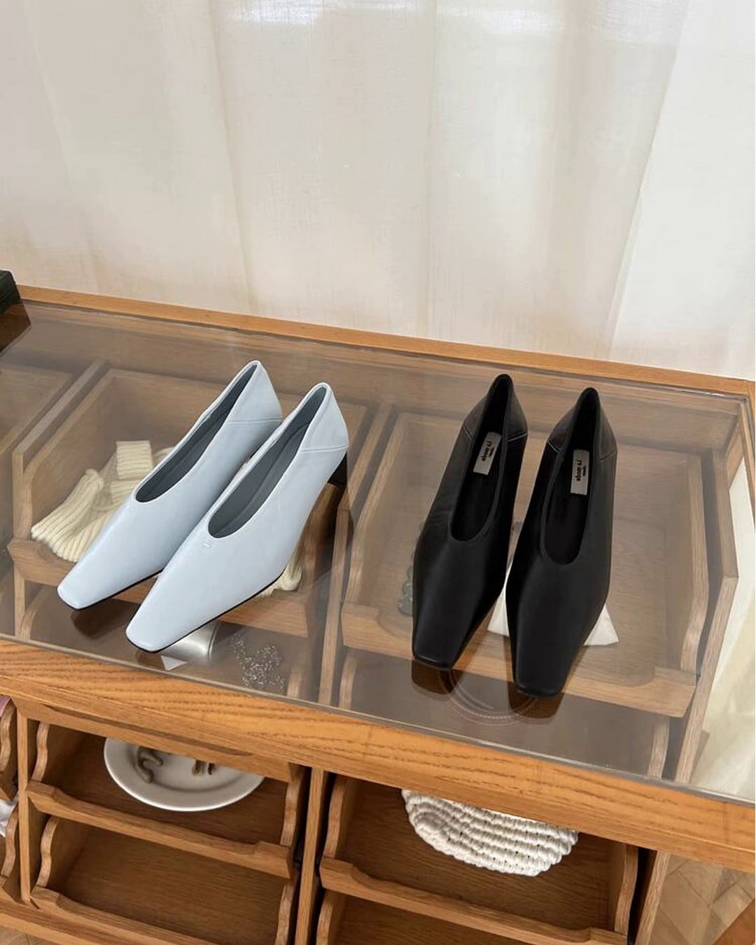 エレガントでモダンなデザインが特徴。先端のスクエア形状が足元を引き締め、どんなスタイルにも合う一足です。通勤やデート、カジュアルなシーンに最適です。