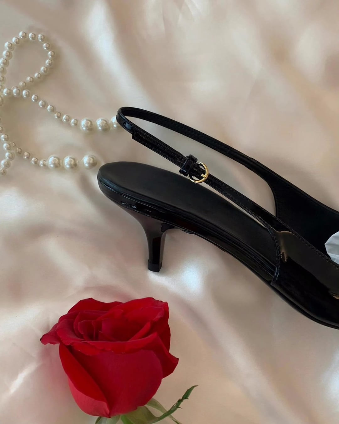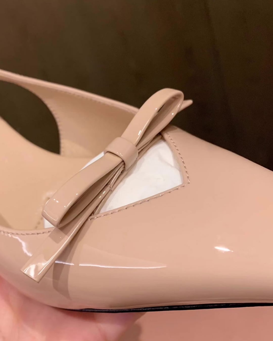可愛らしいリボンデザインが特徴的なパンプスで、バックストラップでしっかりと足をホールドします。オフィスやカジュアルシーンで活躍する一足。ヒールの高さは程よく、歩きやすさを追求しました。普段使いにも特別な日にもぴったりです。