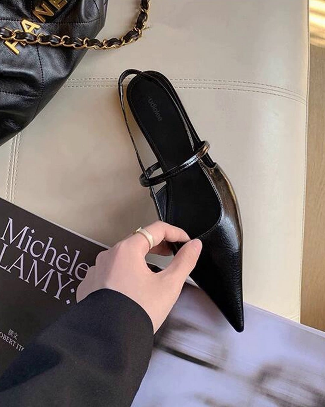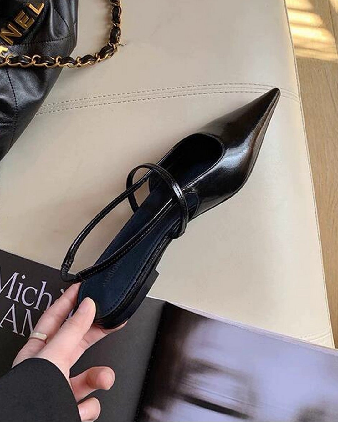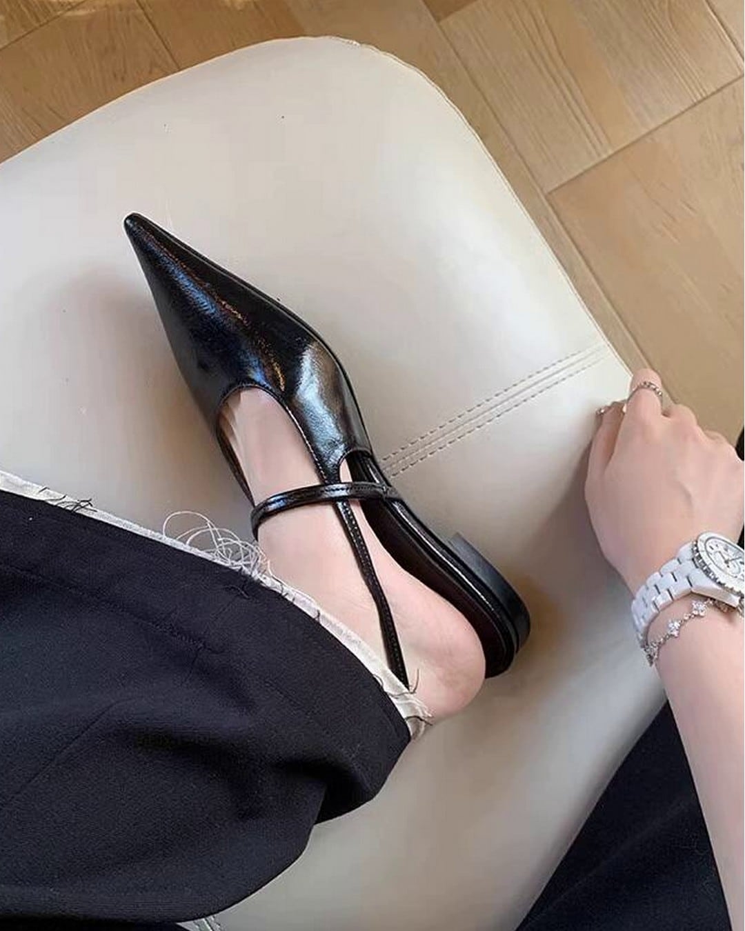 洗練された印象を与えるポインテッドトゥバックストラップシューズ。特徴的なポインテッドトゥが足元を引き締め、バックストラップデザインは一層の女性らしさを演出。カジュアルからフォーマルまで幅広いシーンに活躍する一足です。