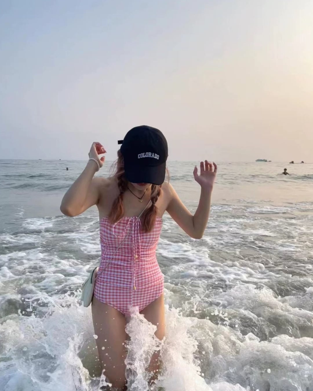 #ギンガムチェック #ワンピース水着 #バンドゥ水着 #スタイルアップ #韓国ファッション
