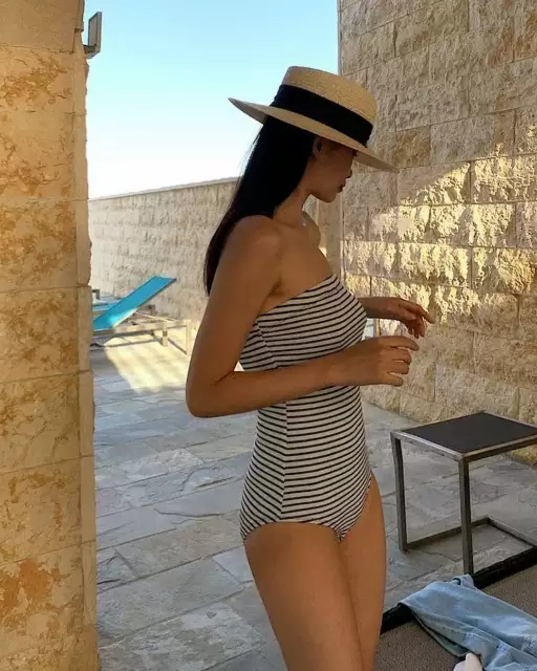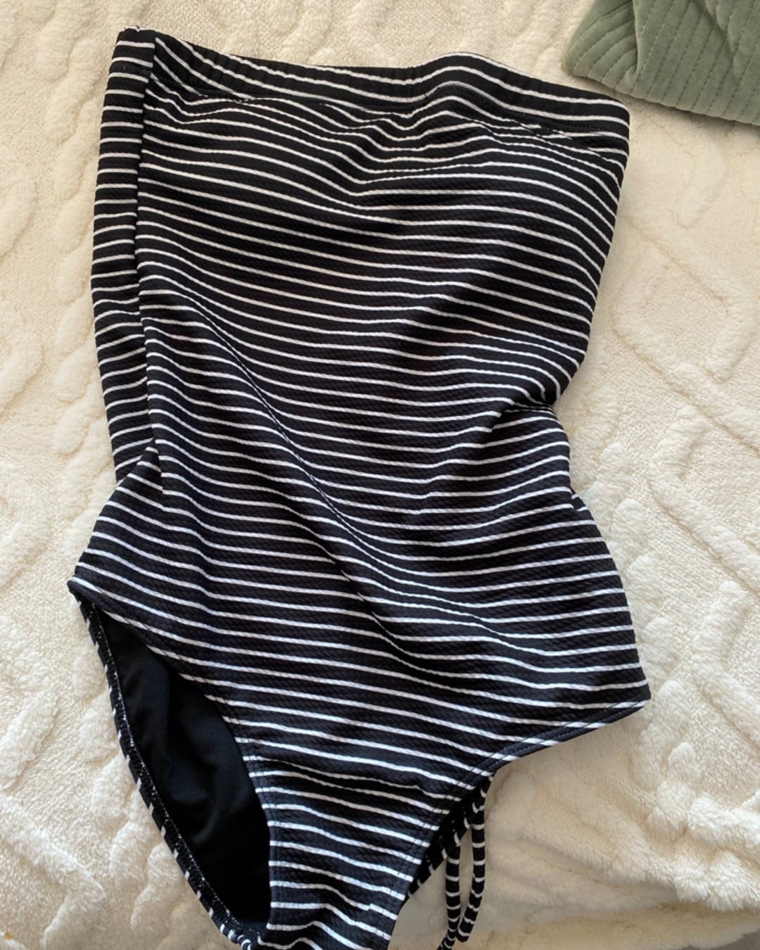 #ワンピース水着 #ストライプ柄 #バンドゥ水着 #夏コーデ #大人可愛い #海コーデ