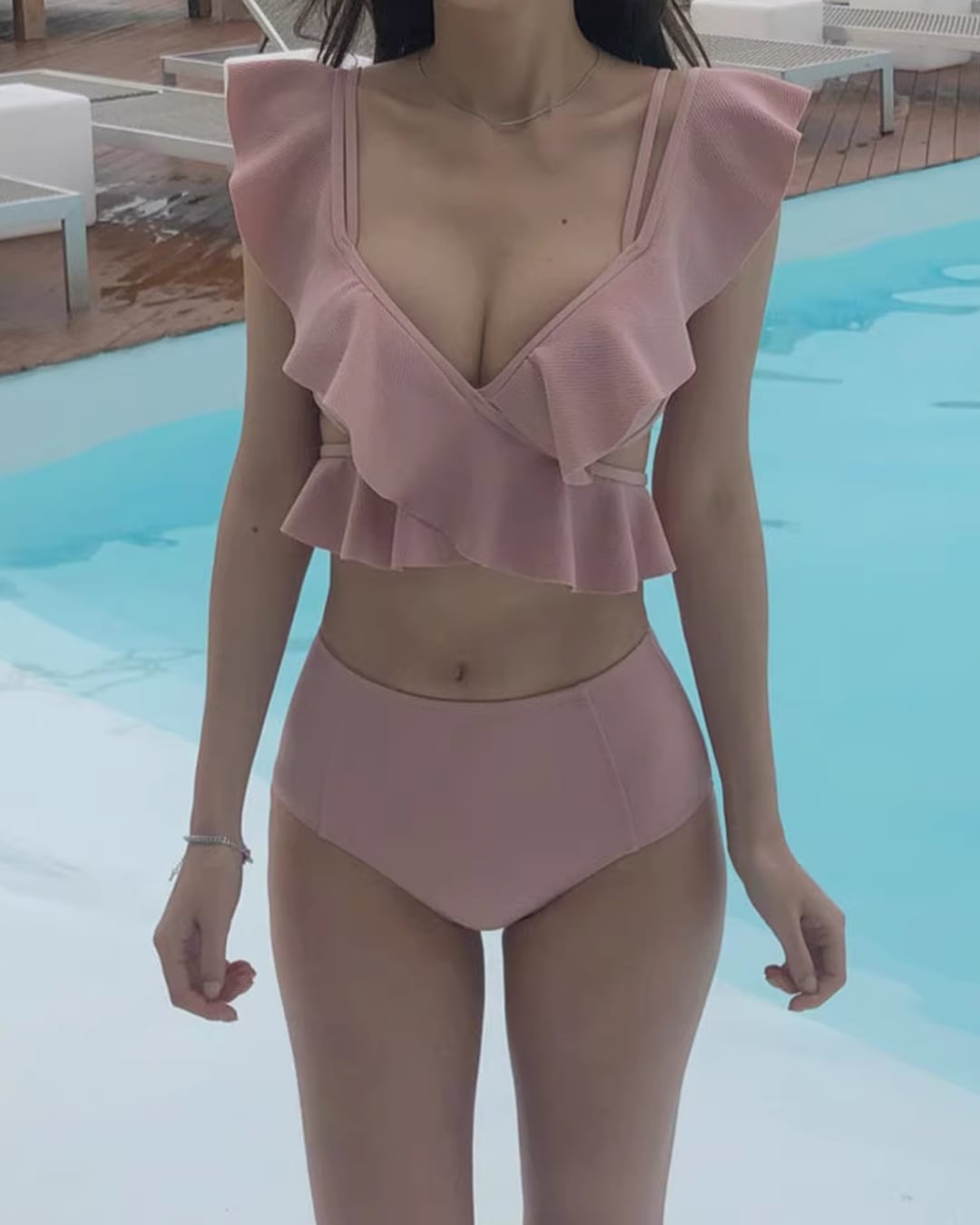#フリル #Vネック #バックリボン #セパレート水着 #ハイウエスト #リゾートコーデ