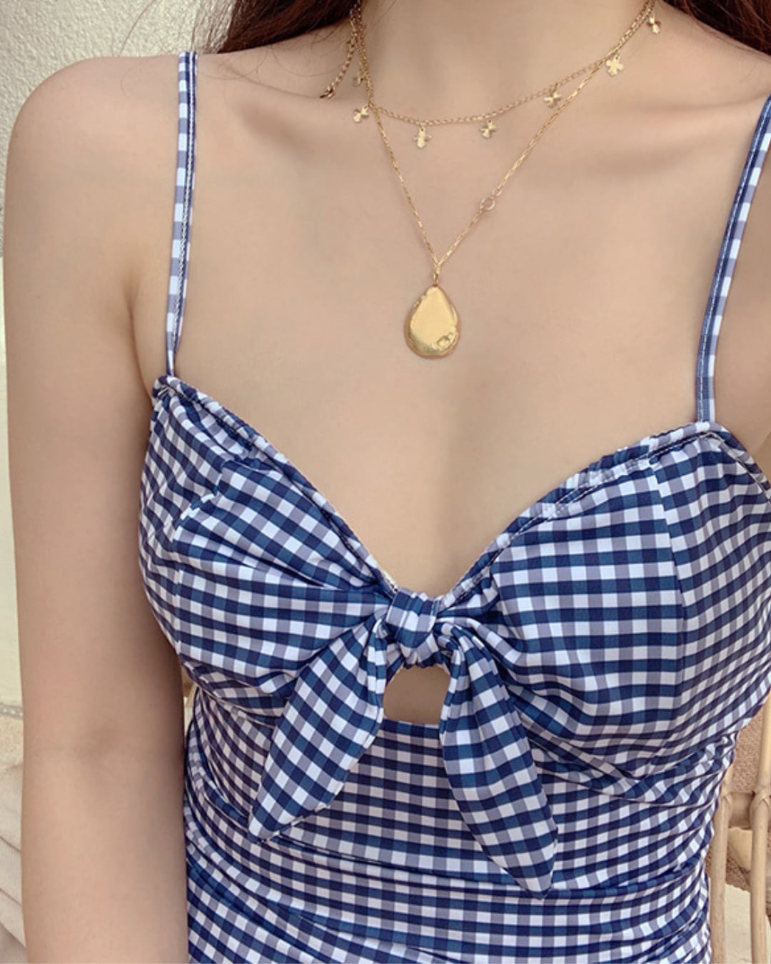 #ギンガムチェック #ワンピース水着 #リボンデザイン #小柄女子向け #体型カバー #韓国風水着
