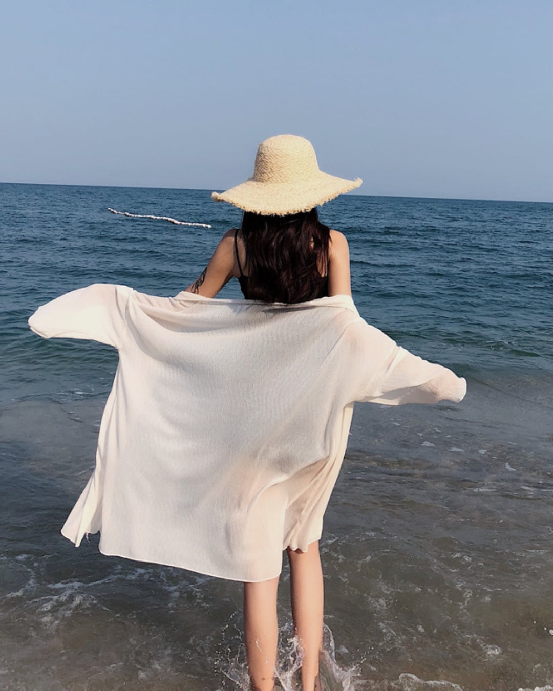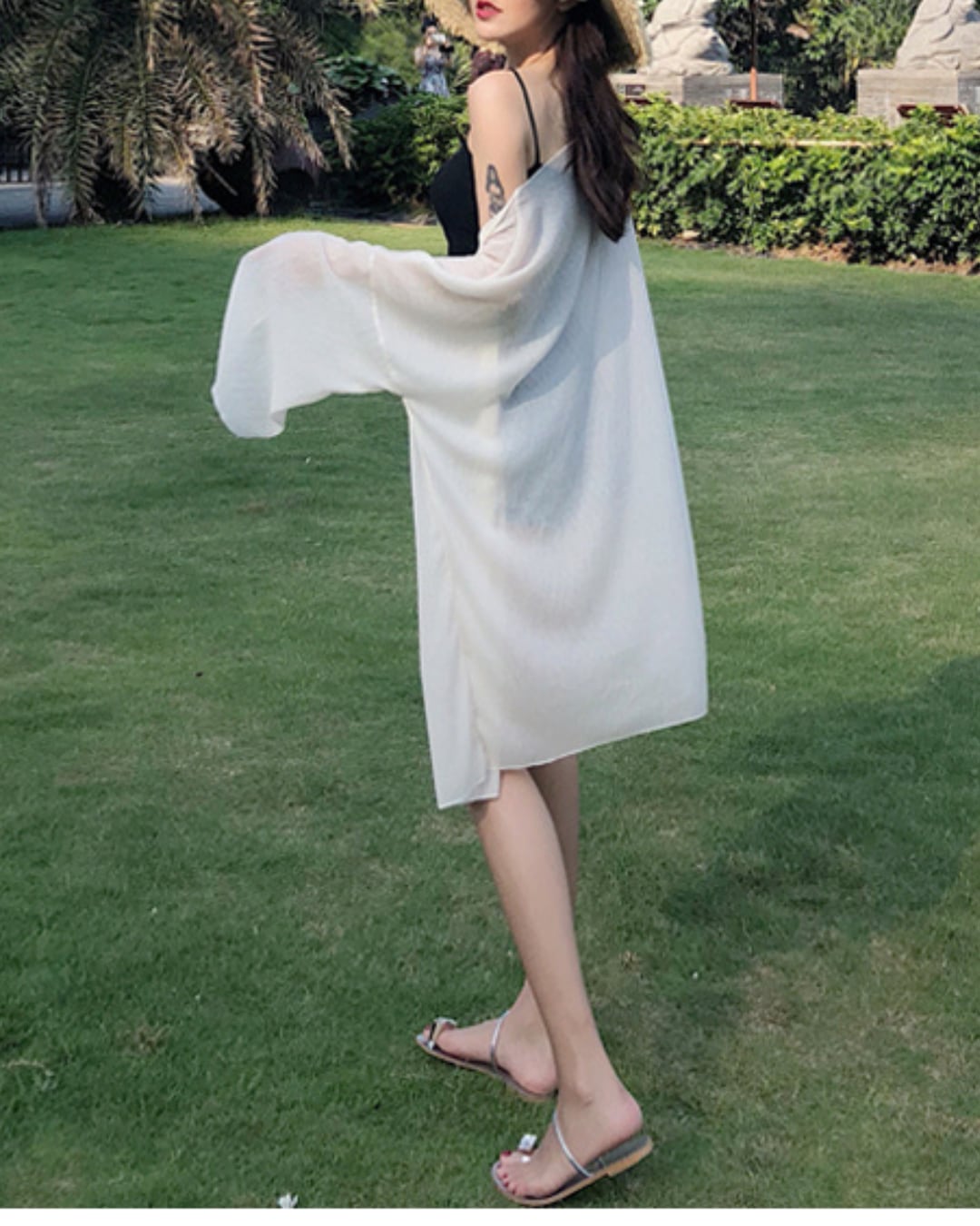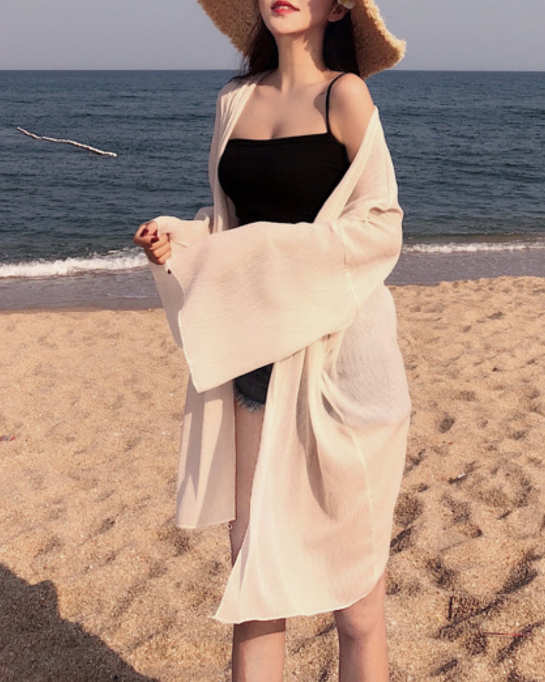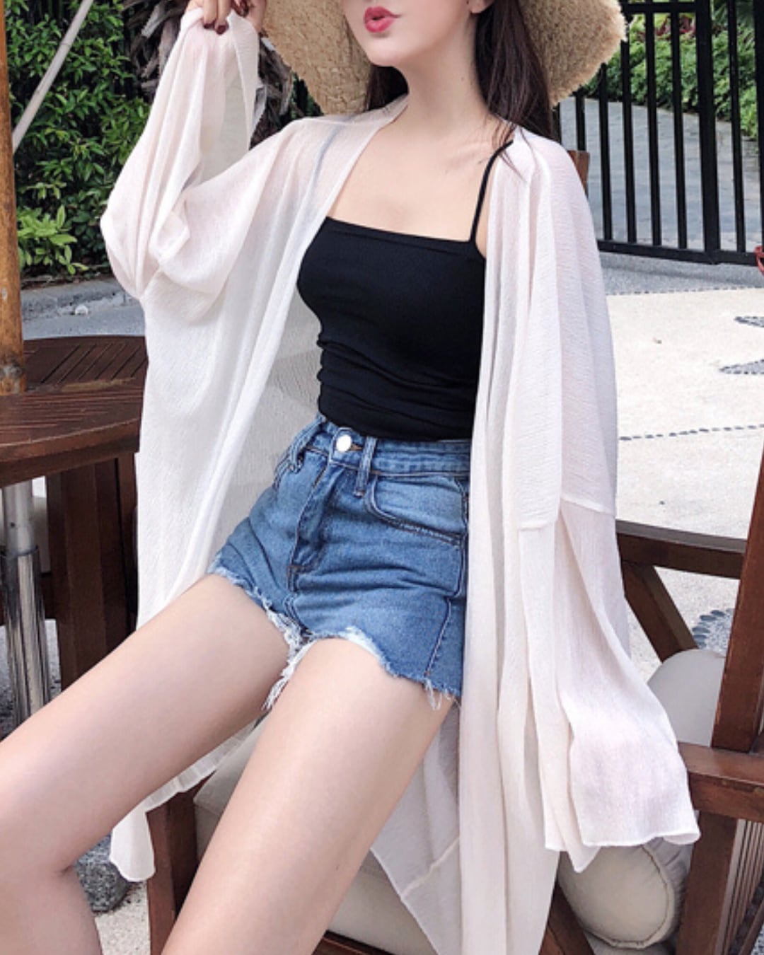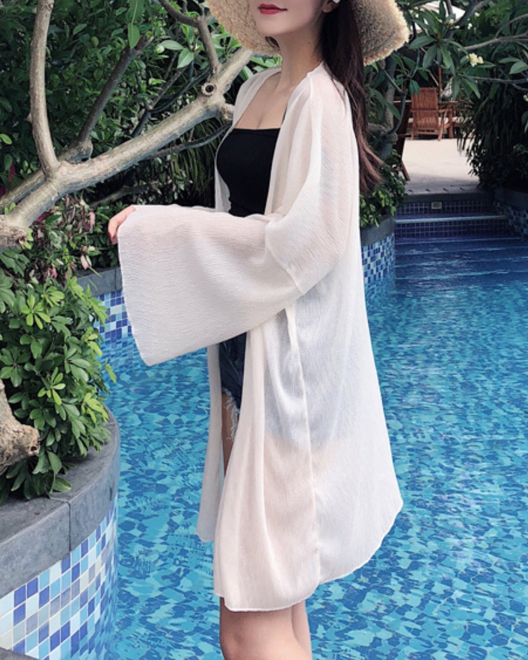 #シアー素材 #リゾートコーデ #羽織りアウター #日焼け対策 #ゆるシルエット #プールサイド #海辺スタイル
