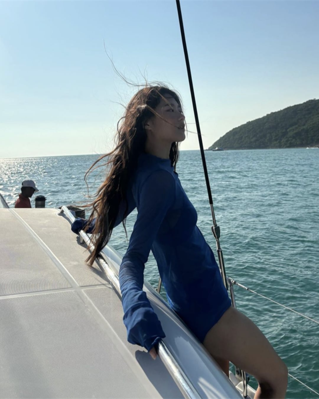 #長袖水着 #シースルー #ハイウエスト #スタイルアップ #3点セット #ブルー水着 #日焼け対策