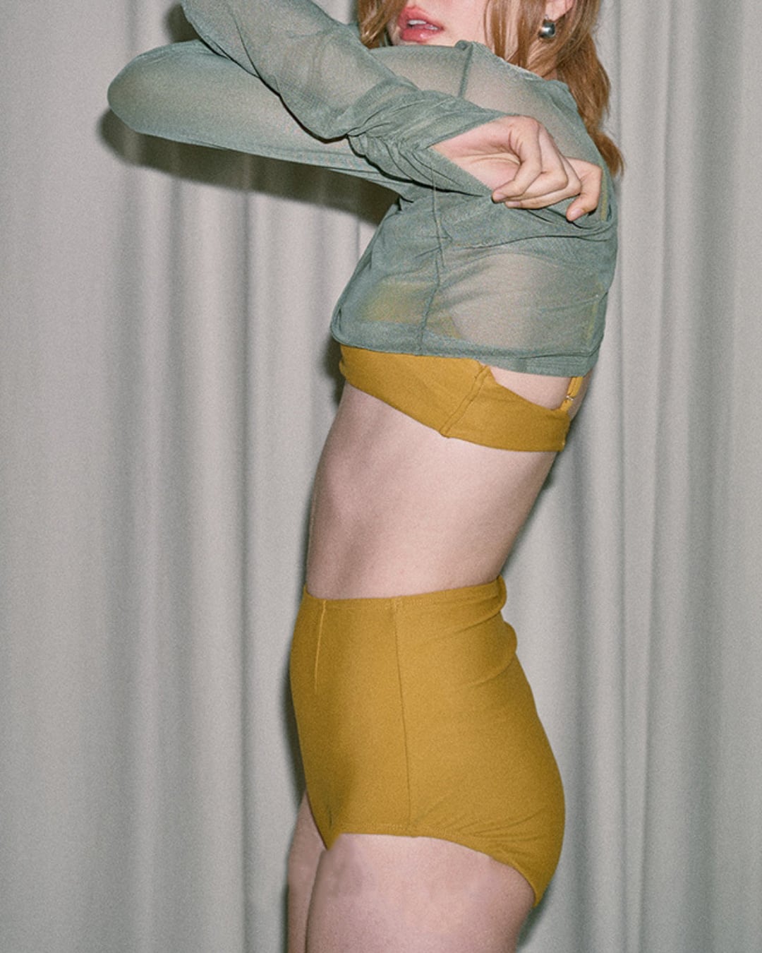 透明感のあるメッシュ素材の長袖トップに、同色のビキニ&ハイウエストショーツがセットになった3点セット水着。ヘルシーな肌見せが叶うシアートップは、日焼け対策もしながら大人っぽさを演出。海やプールだけでなく、ヨットやリゾートにもぴったりな高級感あるデザイン。