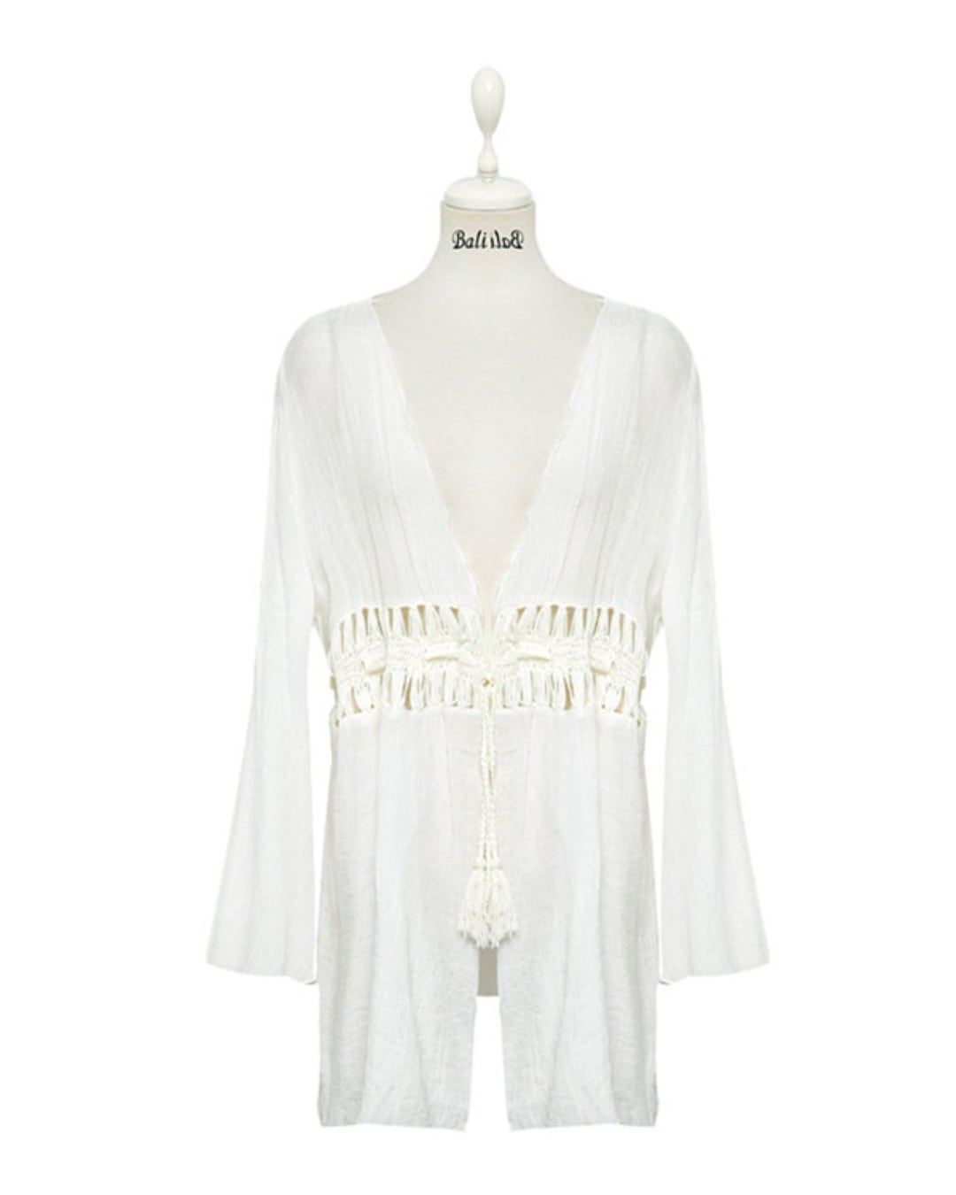 #ビーチガウン #透かしデザイン #リゾートコーデ #羽織り #海辺スタイル #軽やかコーデ #白ガウン