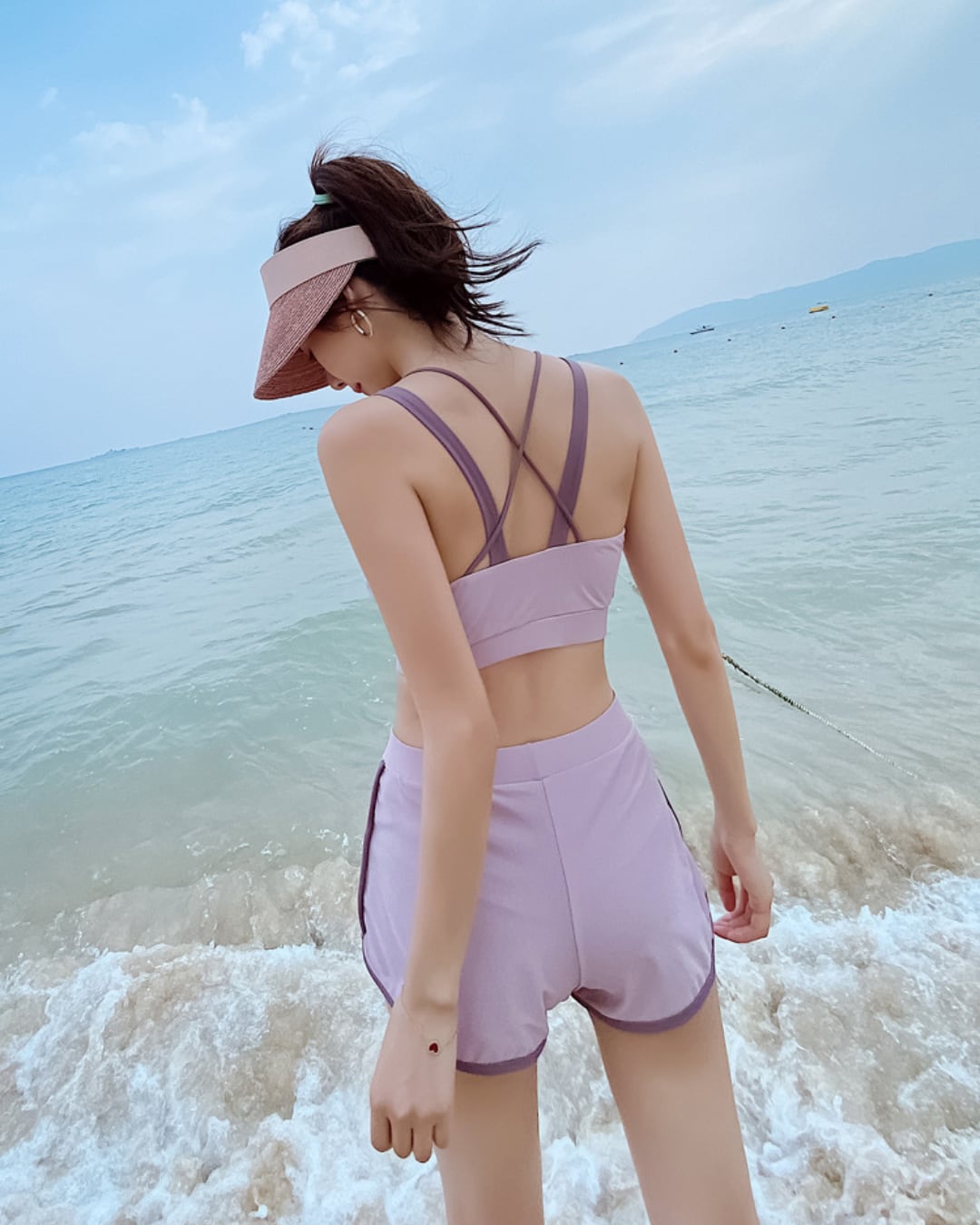 #韓国水着 #スポーティー水着 #4点セット #体型カバー #長袖トップス付き #バストメイク #くすみカラー #温泉コーデ #ビーチスタイル