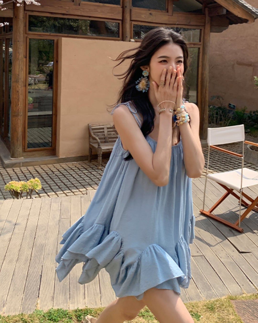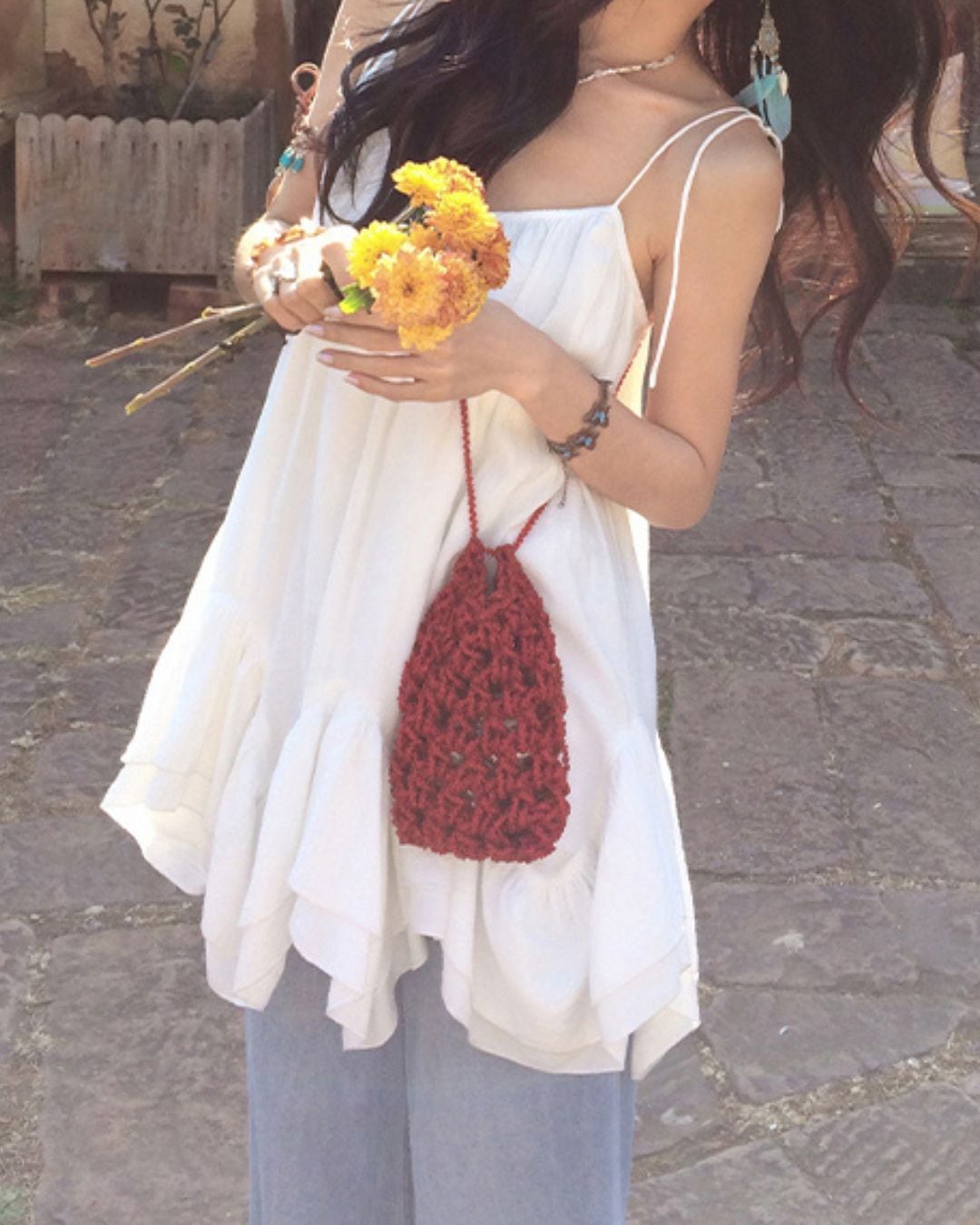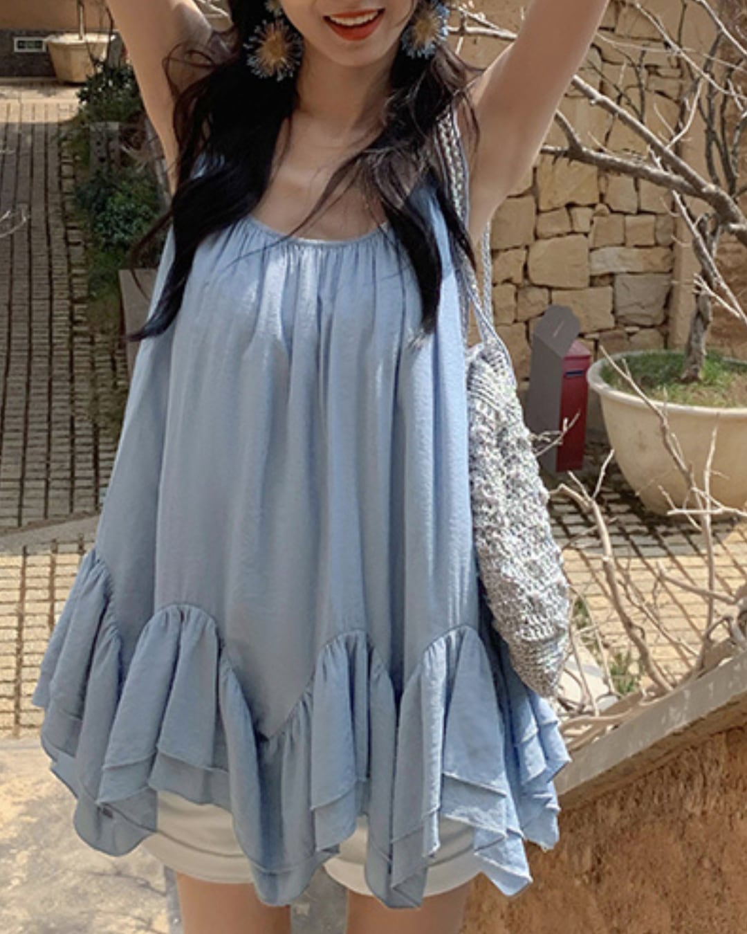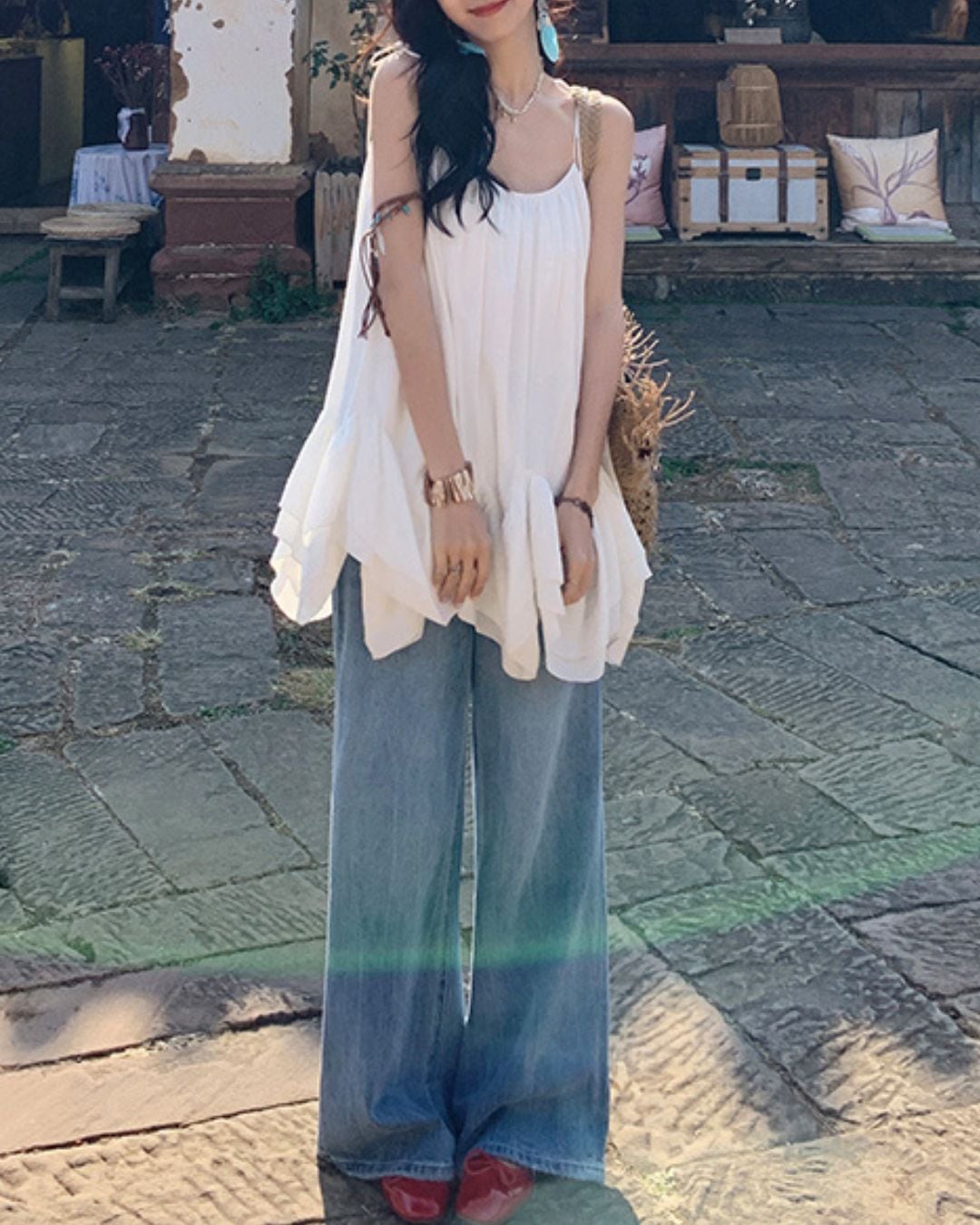 #キャミトップス #フリルデザイン #リゾートコーデ #夏コーデ #ホワイトトップス #ガーリーコーデ