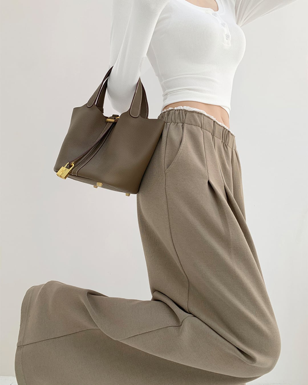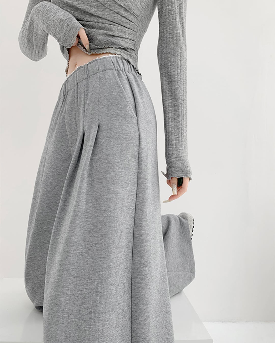 程よく落ち感のある素材で仕上げた、美シルエットのワイドパンツ。タック入りデザインが縦のラインを強調し、脚長効果も◎ウエストはゴム仕様で、ストレスフリーな穿き心地。おうち時間やワンマイルコーデにもぴったりな、万能リラックスボトムです。