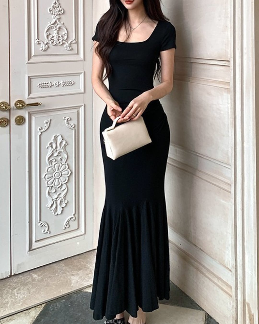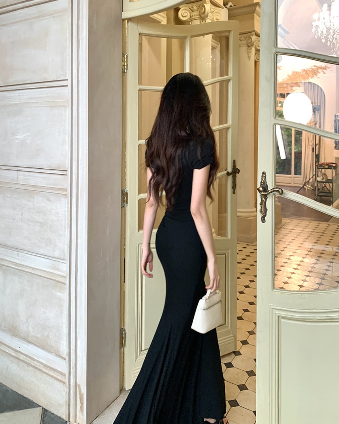 #マーメイドワンピース #フィットシルエット #Uネック #ブラックドレス #春夏秋コーデ #スタイルアップワンピース