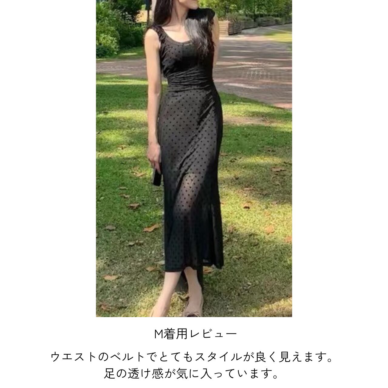 #ドットワンピース #フレンチスタイル #透け感 #タイトシルエット #フェミニン #ロングワンピース #レビュー #ブラックワンピース