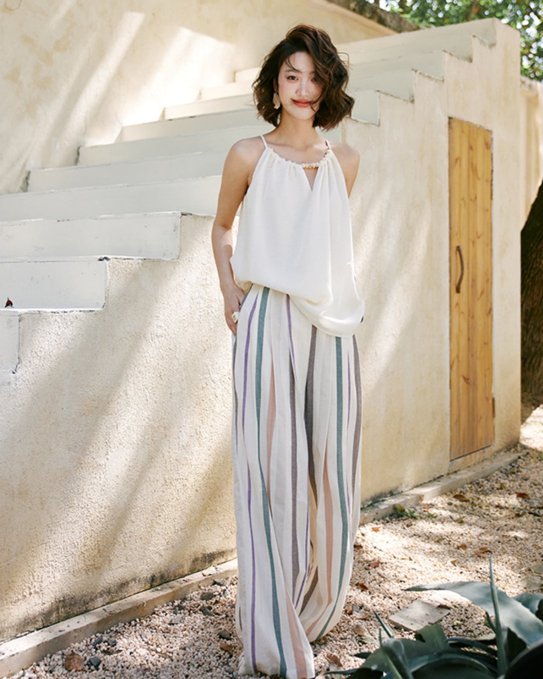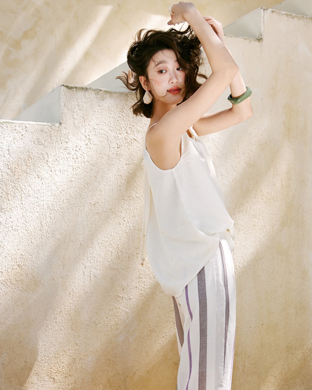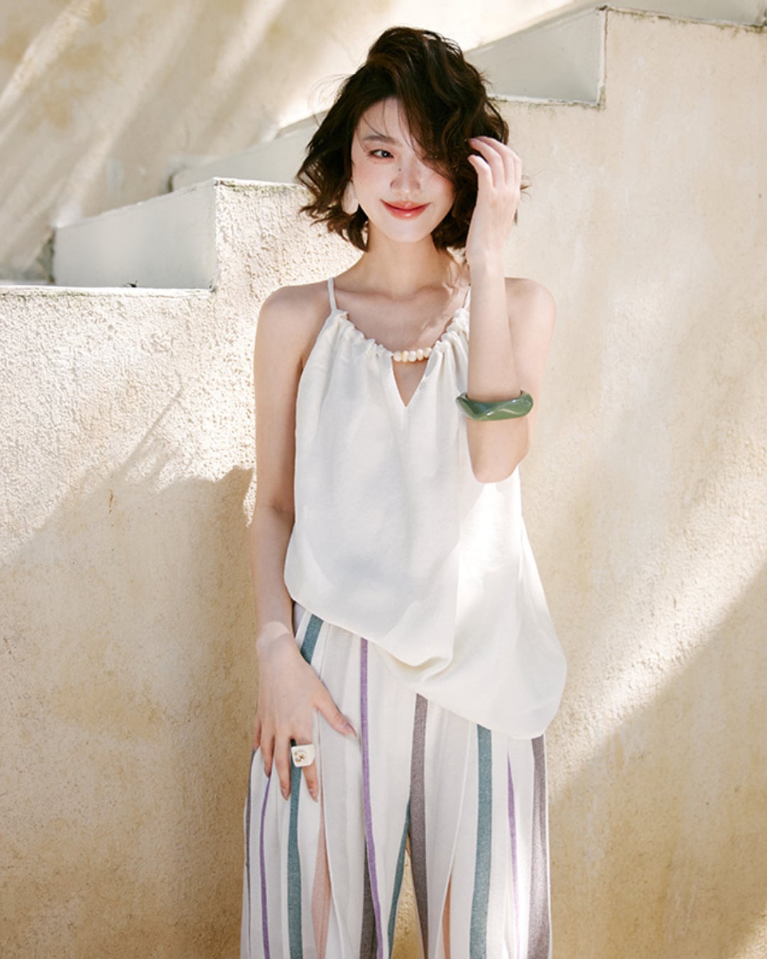 #シルク #キャミソール #ビーズデザイン #ナチュラルコーデ #涼しげトップス #フェミニンスタイル