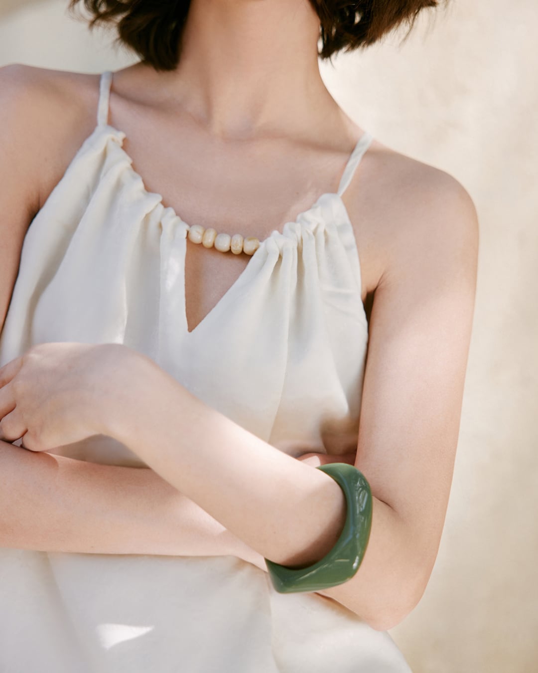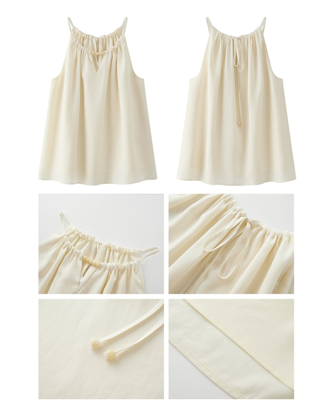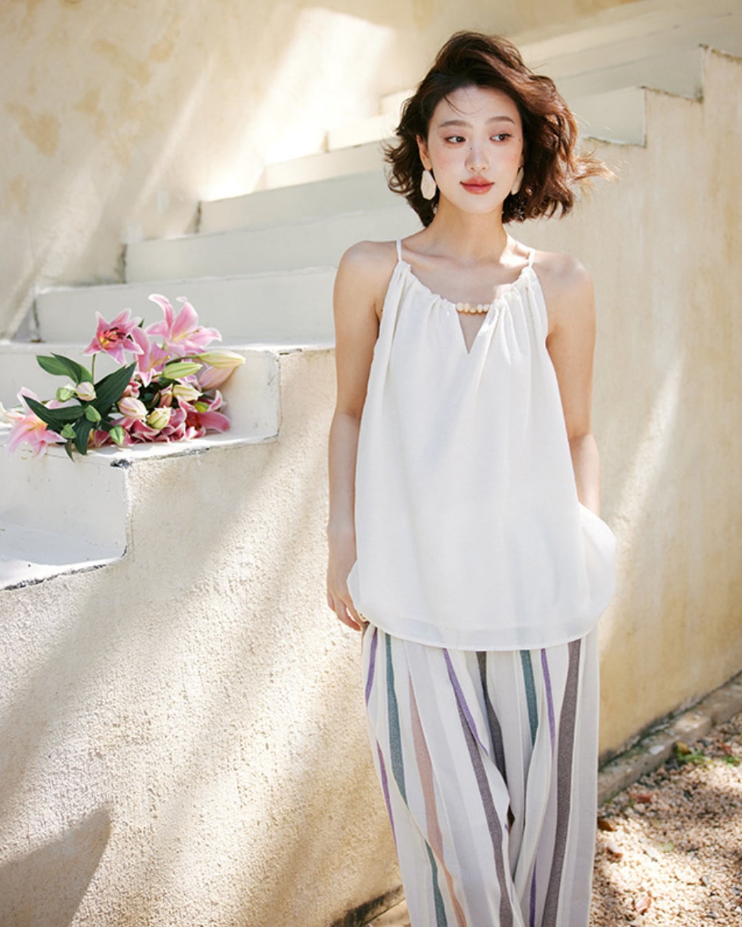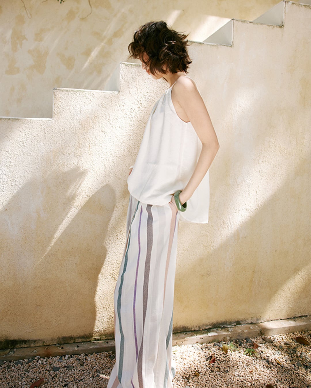 #シルク #キャミソール #ビーズデザイン #ナチュラルコーデ #涼しげトップス #フェミニンスタイル