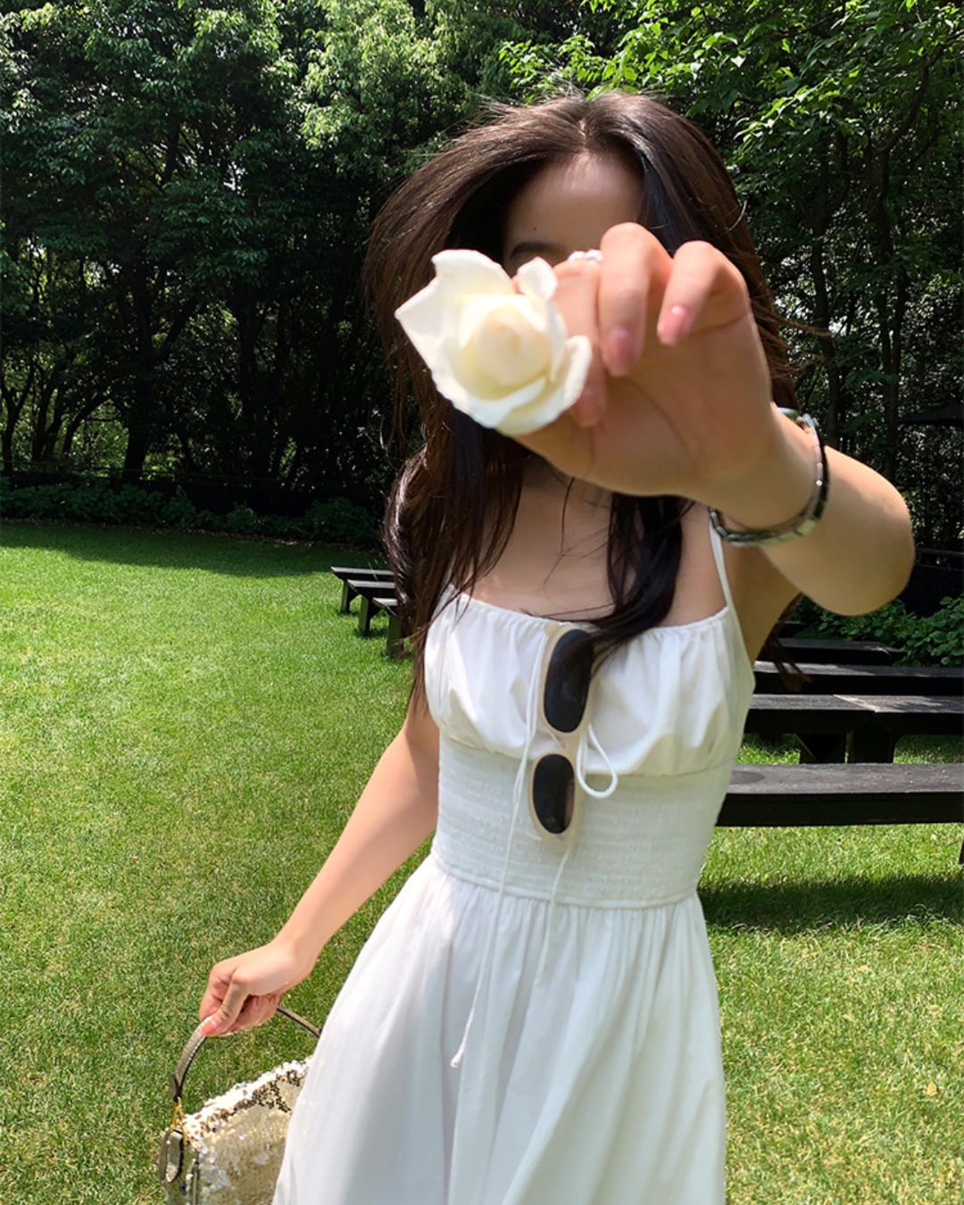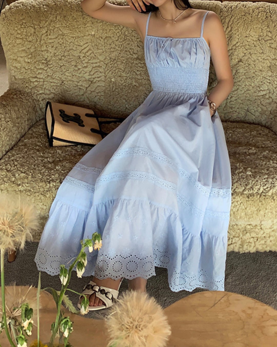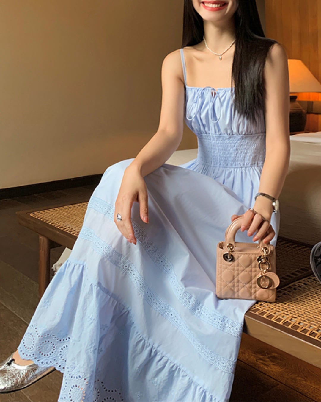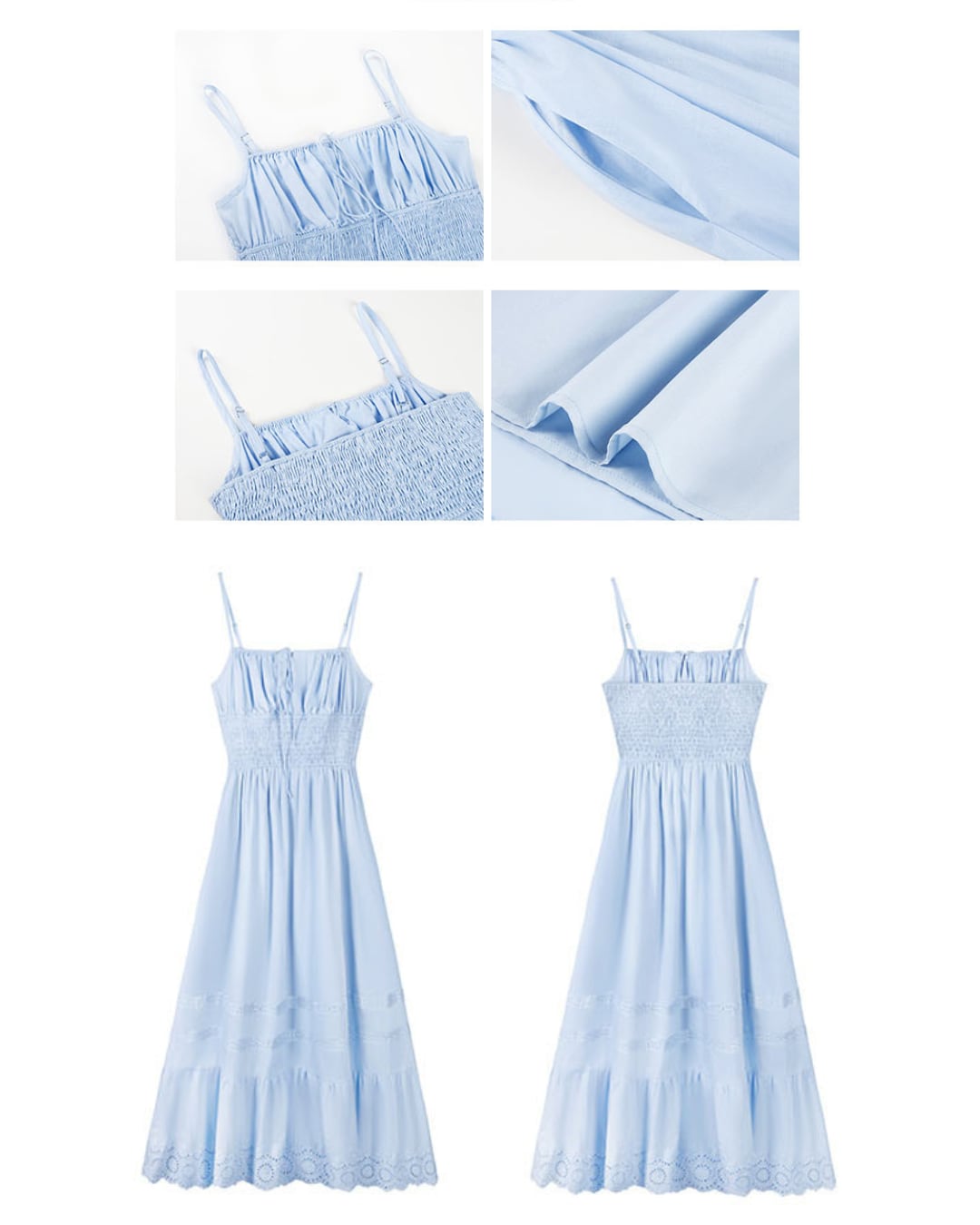 ロマンティックなムードを纏う、繊細なレースとギャザーデザインが魅力のロングキャミワンピース。ナチュラルなコットン素材でさらっと涼しく、肌当たりも優しく快適な着心地です。裾には刺繍レースがあしらわれ、上品な甘さをプラス。ふんわりAラインシルエットで女性らしさを引き立てます。デイリーにはもちろん、バカンスやリゾートシーンにもおすすめの一枚。友達とのお出かけやリンクコーデにも◎。
