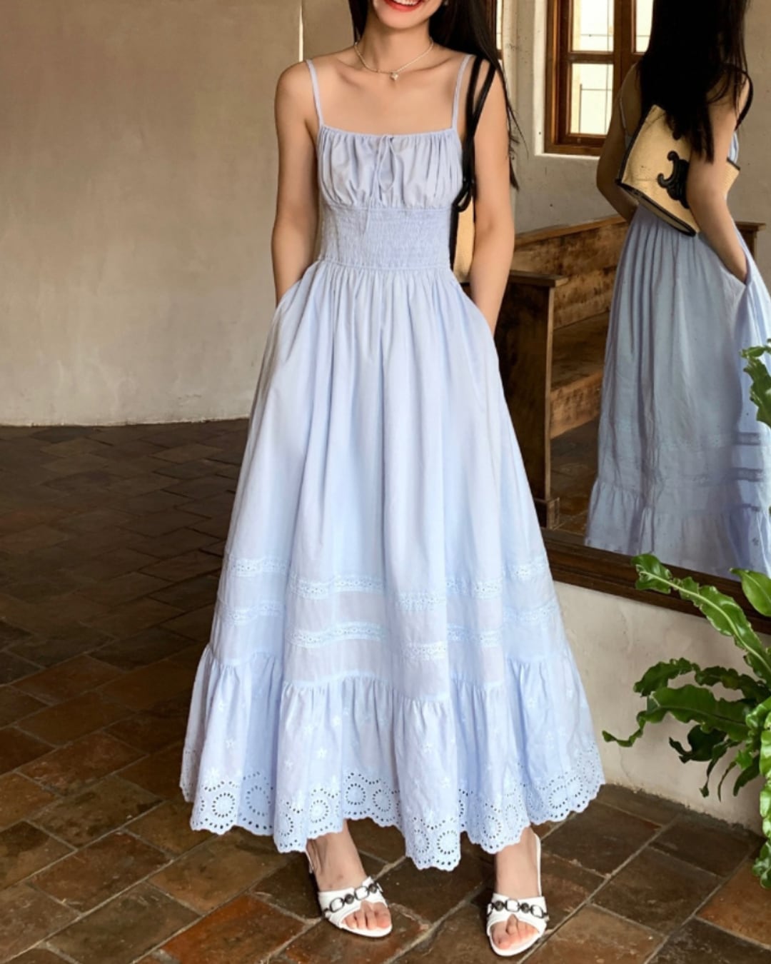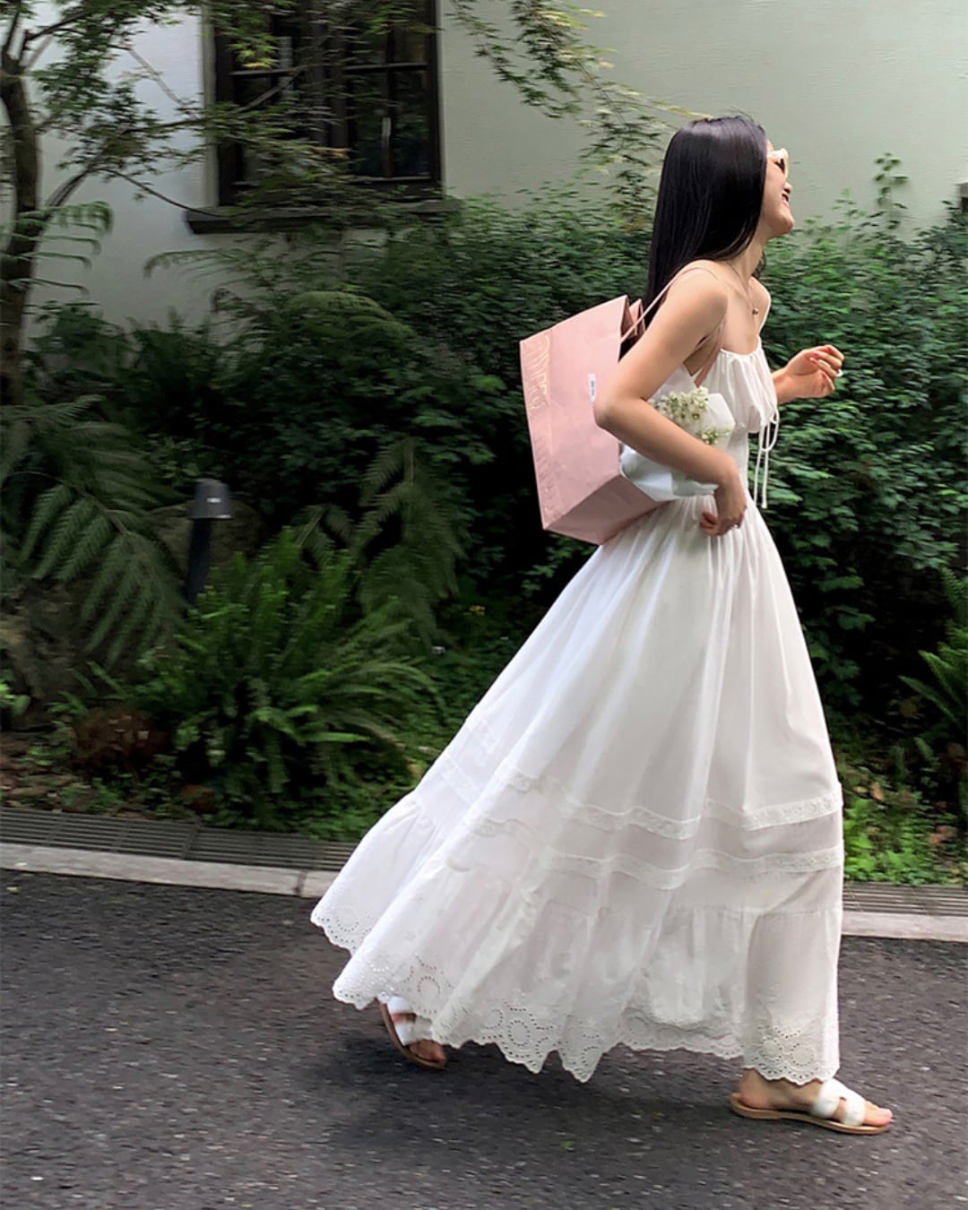 #キャミワンピース #刺繍レース #ナチュラルコーデ #フェミニン #リゾートスタイル #ロングワンピース