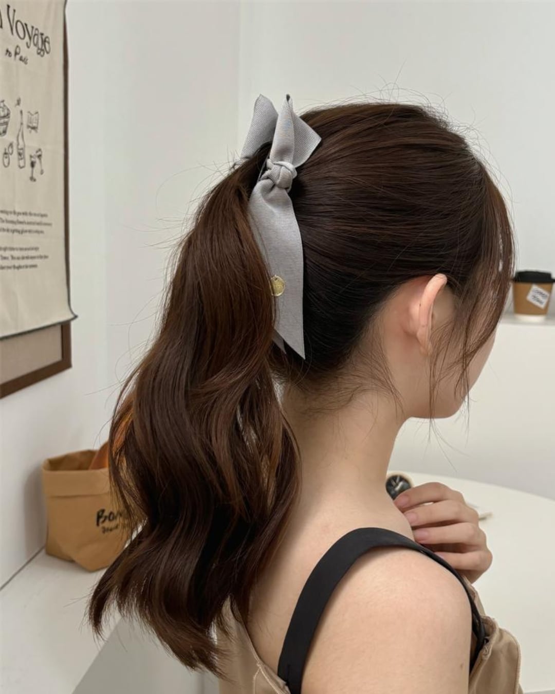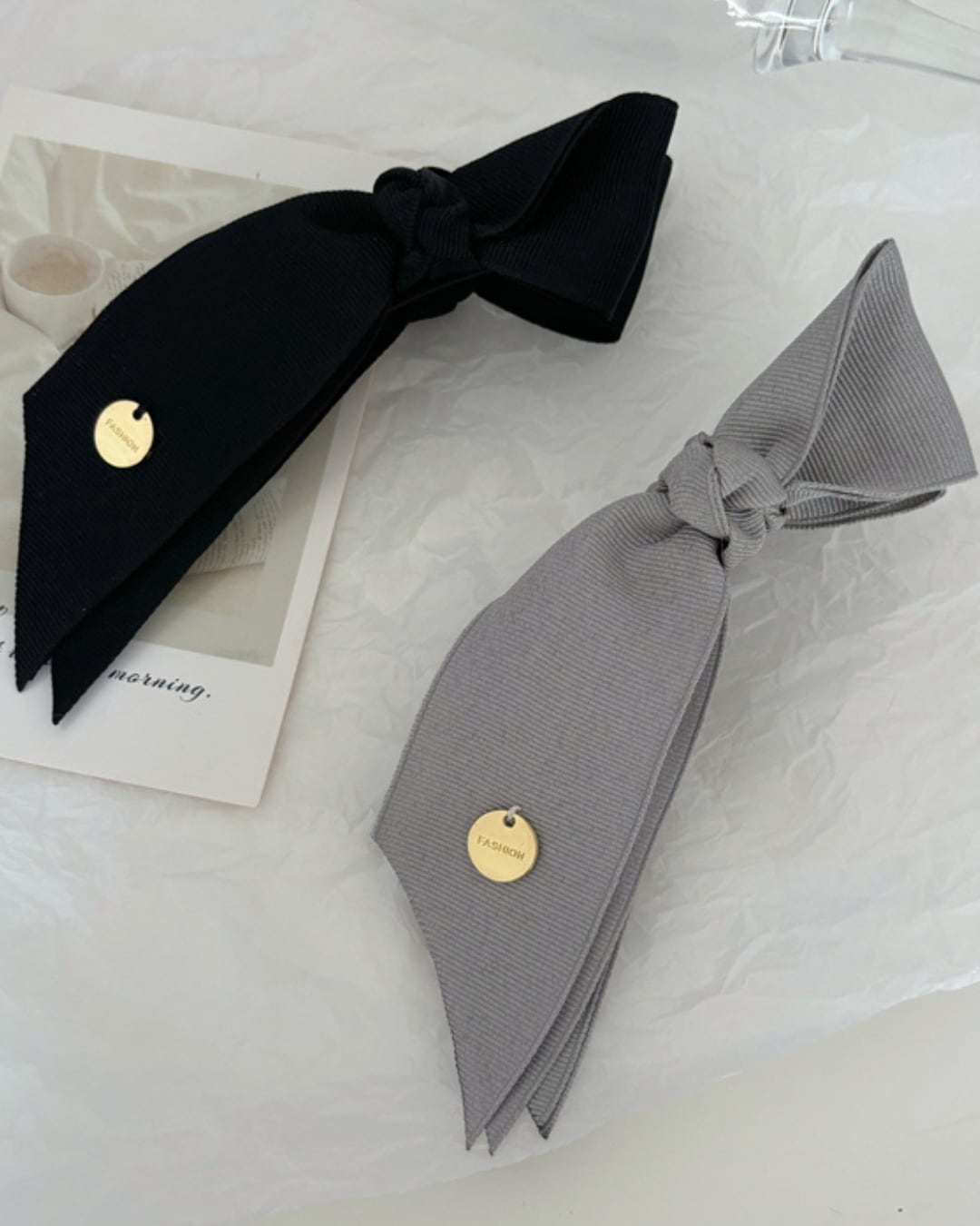 #バナナクリップ #リボンヘア #まとめ髪 #シルバーグレー #韓国ファッション #ヘアアクセサリー
