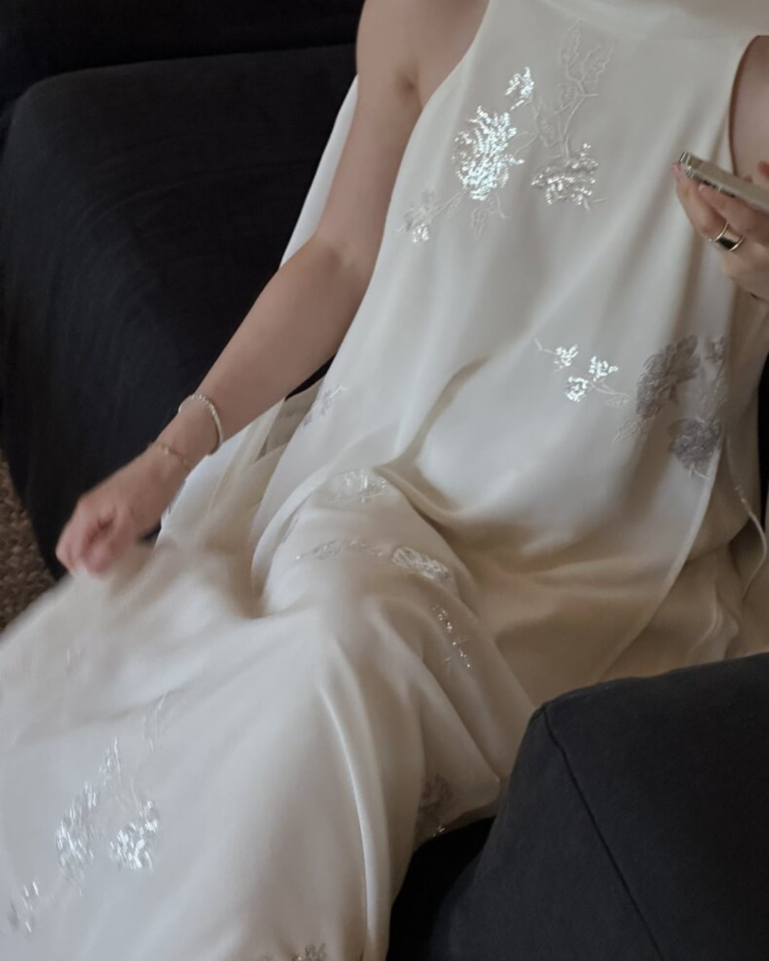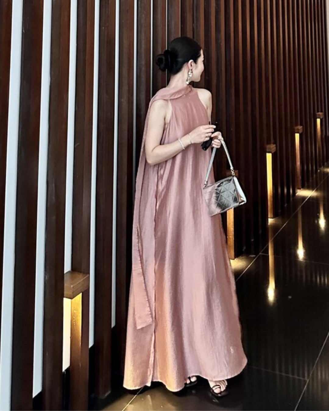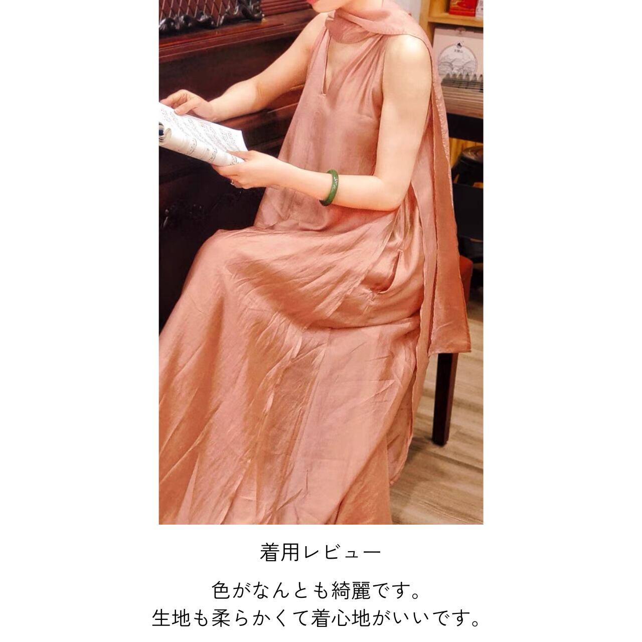 シアーな光沢感が魅力のフローレスワンピース。ふわりと揺れるエアリーなシルエットが上品でリラックス感のある着こなしを叶えます。背中から流れるようなロングデザインがドラマティックな印象を与え、日常からリゾート、特別な日のお出かけにもぴったりです。