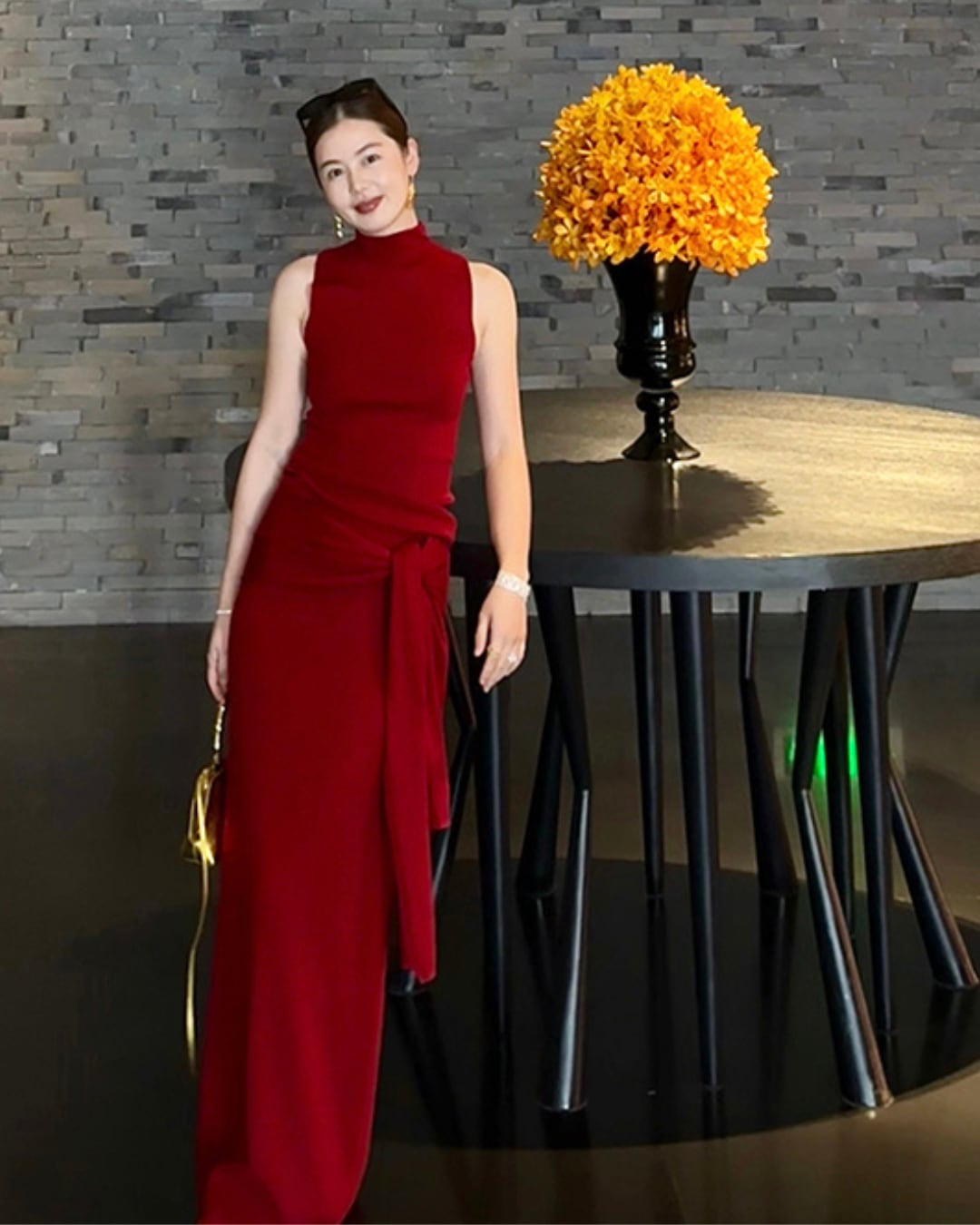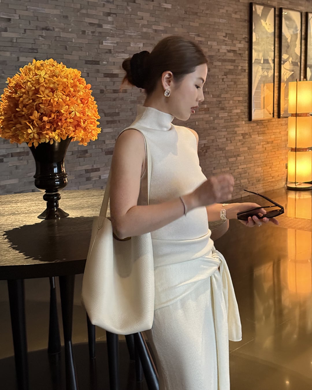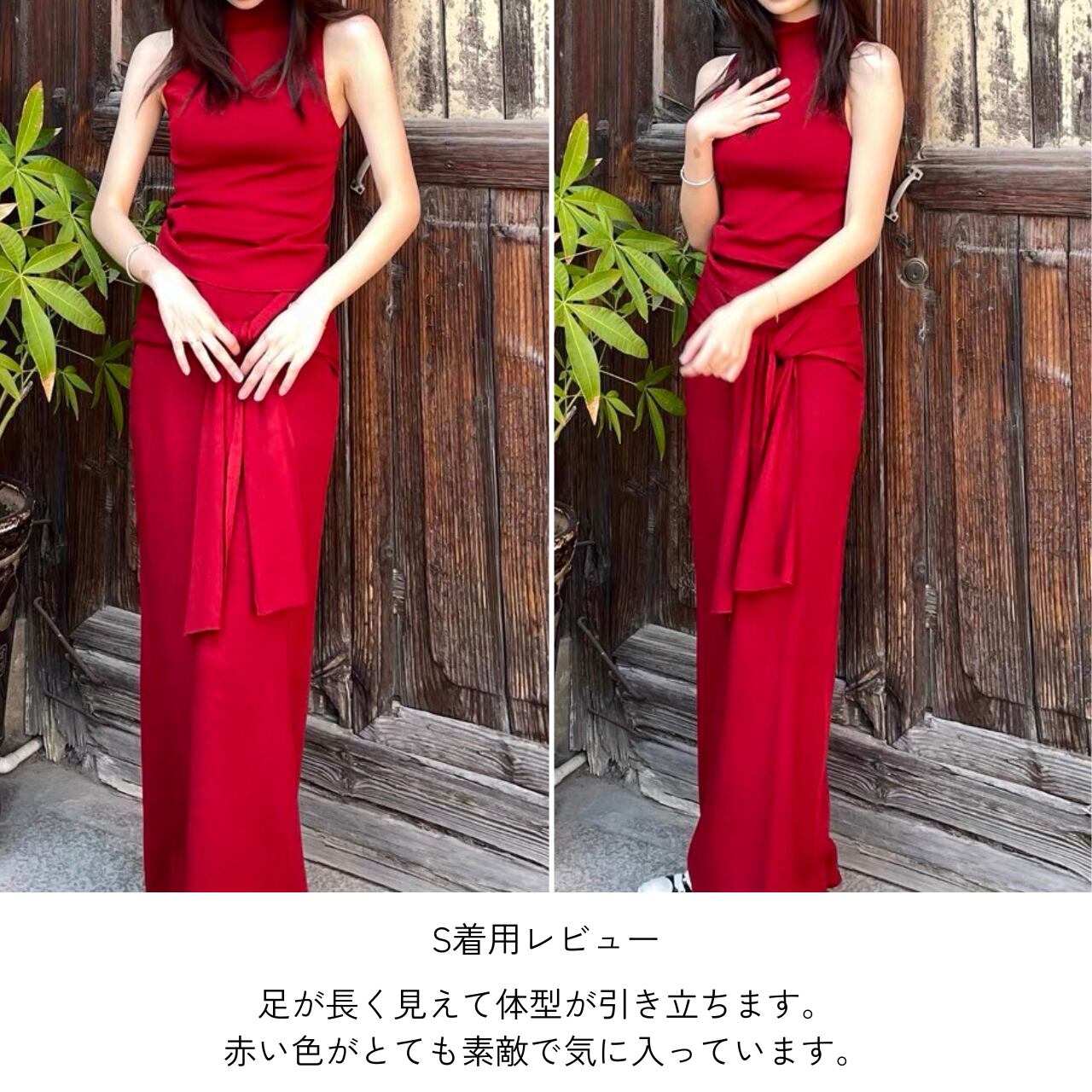 洗練された印象を与えるノースリーブハイネックトップスとストレートラインスカートのセットアップ。トップスはほど良いフィット感と絶妙なハイネックで首元をすっきり見せつつ、サイドのラインを拾いすぎず綺麗なシルエットをキープ。柔らかく伸縮性のある編地で着心地も快適。スカートはウエストリボン付きで気になるお腹周りを自然にカバーしながら、ストンと落ちるIラインがスタイルアップを実現。上品な素材感とスマートなフォルムで、デイリーからお出かけまで幅広く活躍します。白は淡色インナーの着用をおすすめします。