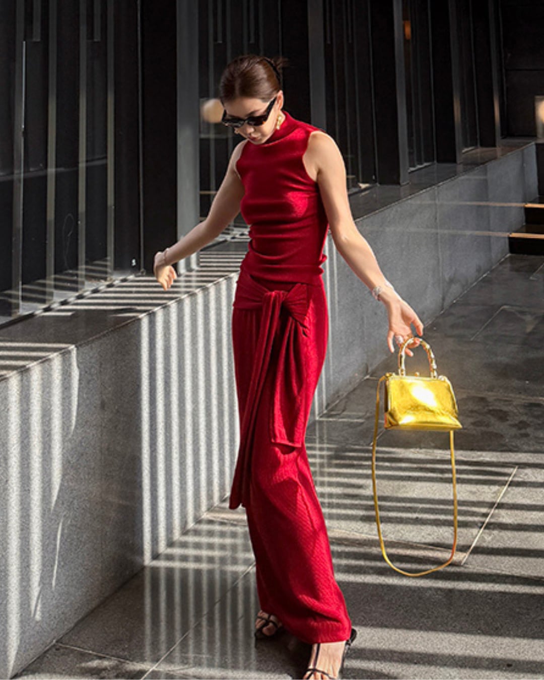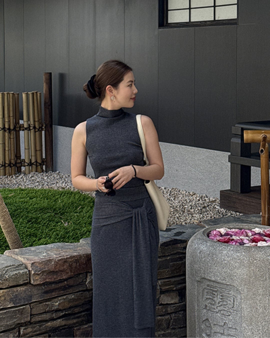 #ハイネックトップス #Iラインスカート #ウエストリボン #モードコーデ #スタイルアップ #ミニマルスタイル #レビュー