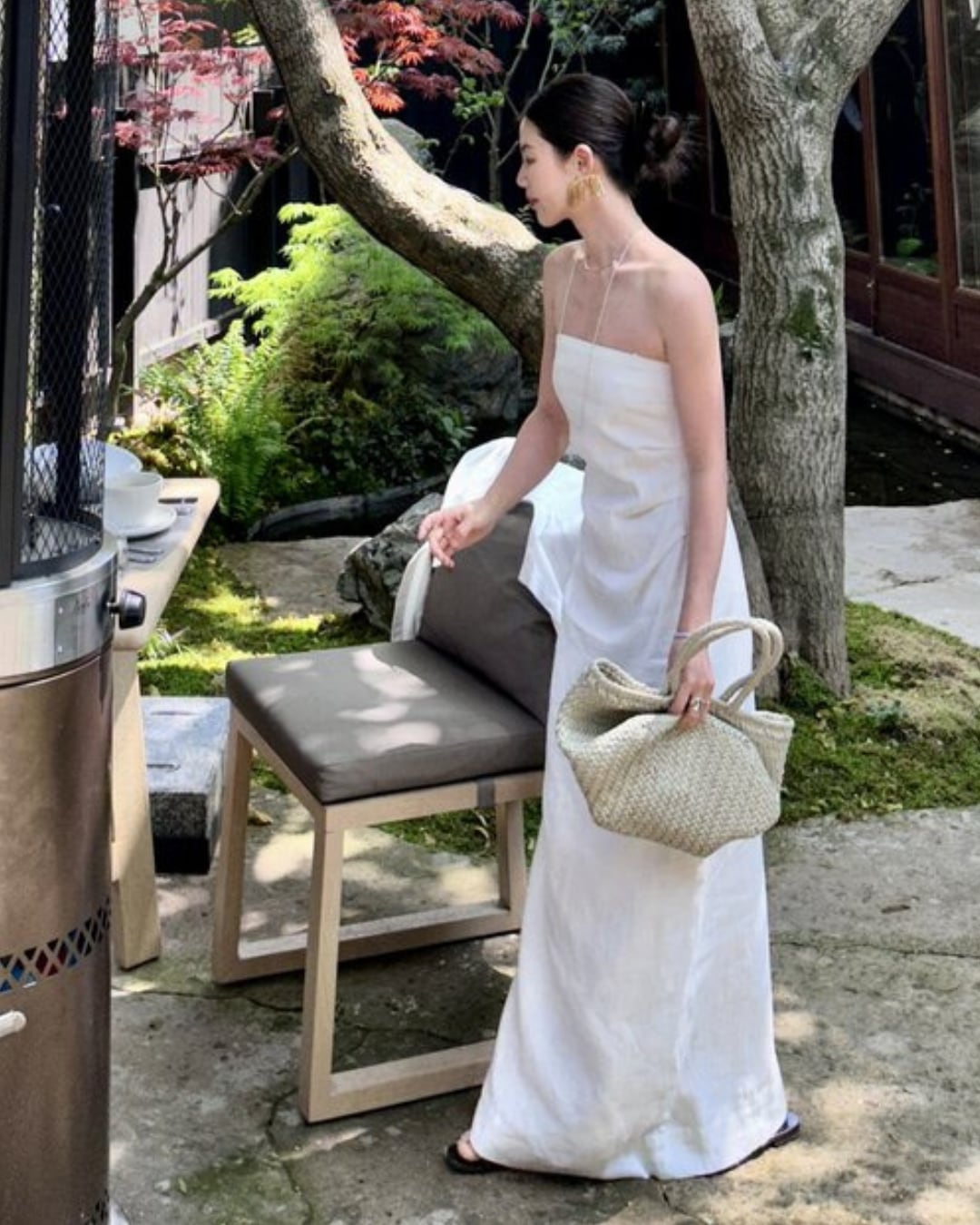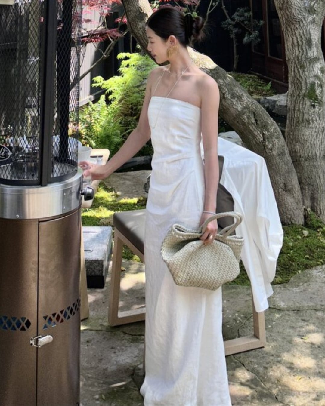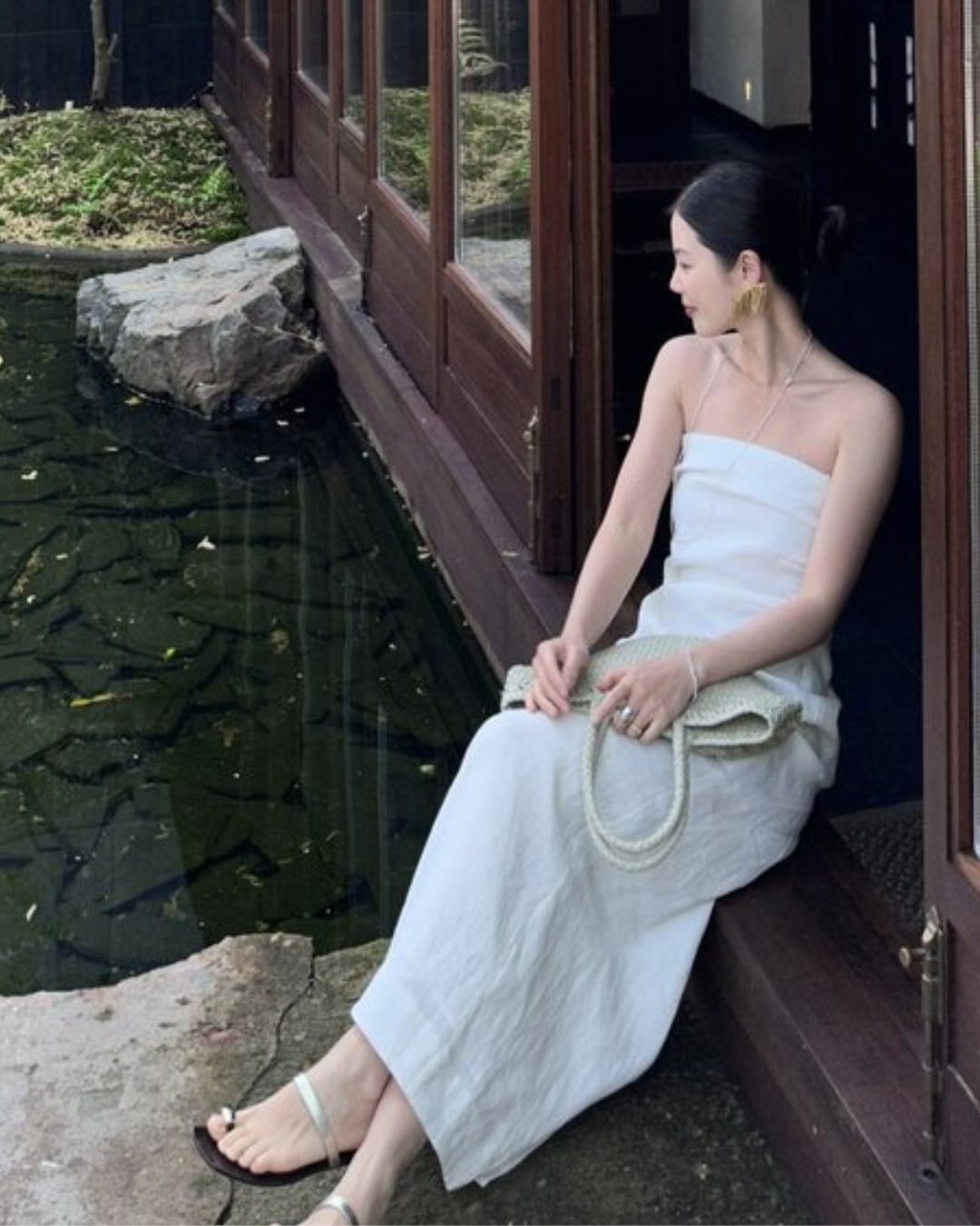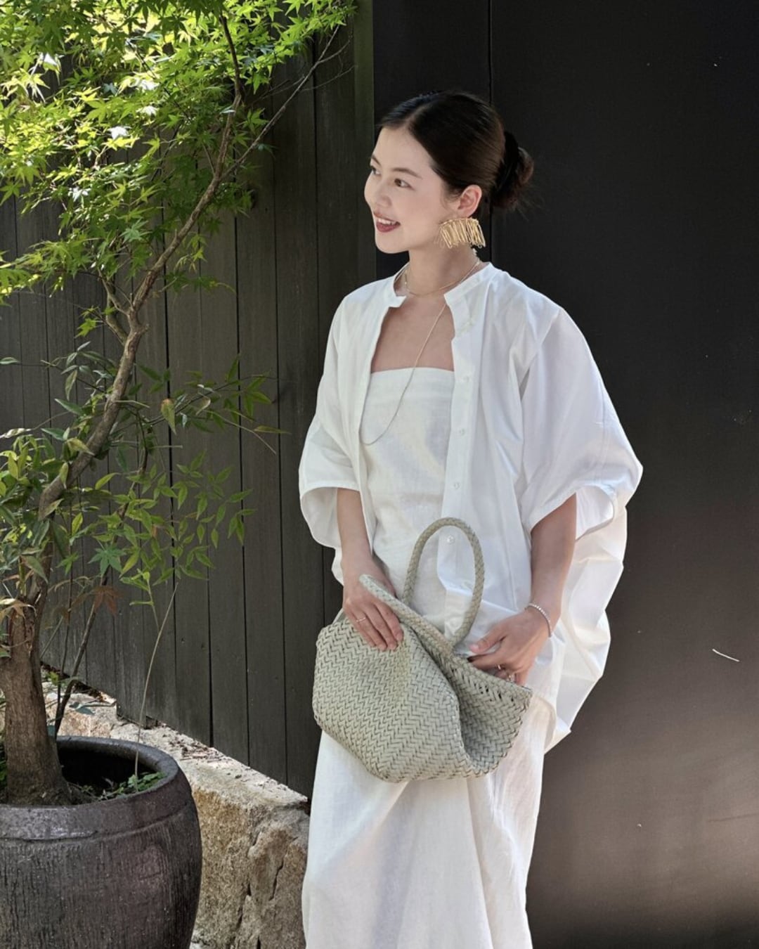 胸元に立体感のあるタックを施した美シルエットが魅力のリネンワンピース。ボディラインを拾いすぎず程よくフィットする構造で、気になるお腹まわりも自然にカバーしてくれる優れもの。胸元には取り外し可能な華奢なストラップが付いており、シーンに応じて2WAYで着用可能。内側には滑り止めテープを施しているため、ストラップレスでも安心して着用できます。ウエストは後ろシャーリング仕様でフィット感があり、背中側にスリットが入っているため足さばきも快適。裏地はさらっとした肌当たりのコットン100%素材で、夏の暑い日にもストレスフリーな着心地。何度も型紙を調整して作り上げた、計算された美しさが際立つ一着です。