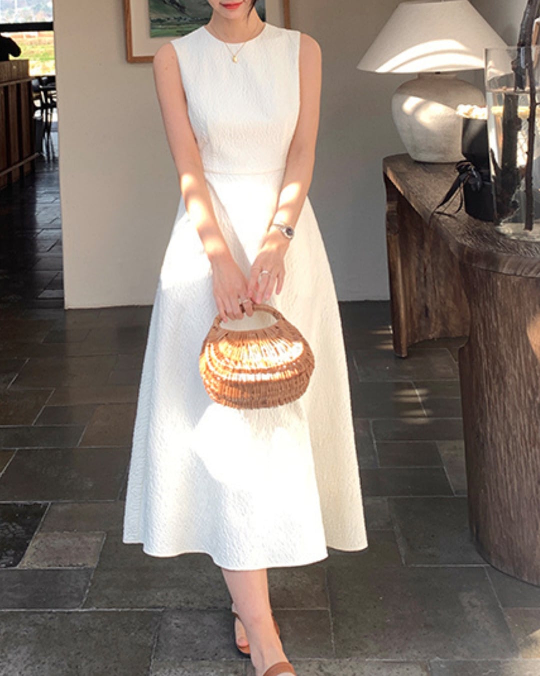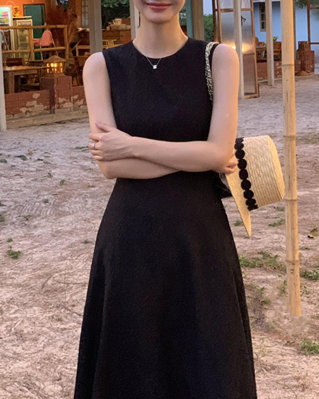 シンプルながら洗練されたシルエットが美しいノースリーブワンピース。ウエストのシェイプと広がりすぎないAラインが上品な印象を演出します。軽やかな素材感とシックなブラックカラーで、カジュアルからリゾート、オケージョンスタイルまで幅広く対応。バッグやアクセサリーで雰囲気のアレンジも自在な1着です。