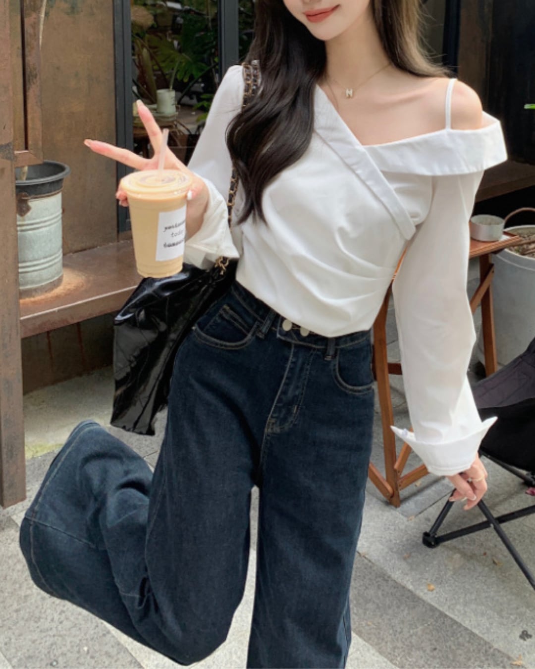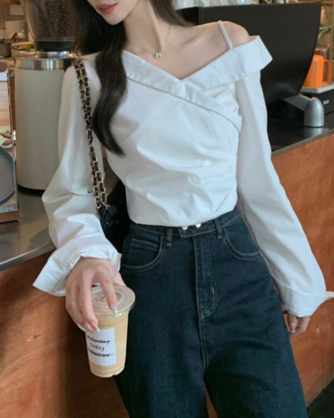 #オフショルダー #長袖 #ホワイト #韓国ファッション #カジュアル #大人可愛い #抜け感