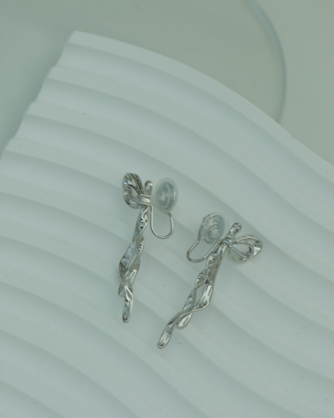 アシンメトリーなウェーブラインが耳元に個性を添えるデザインイヤリング。曲線美が際立つシルエットで、モードからフェミニンまで幅広いコーデにマッチ。ピアスタイプとイヤリングタイプの2種類からお選びいただけます。