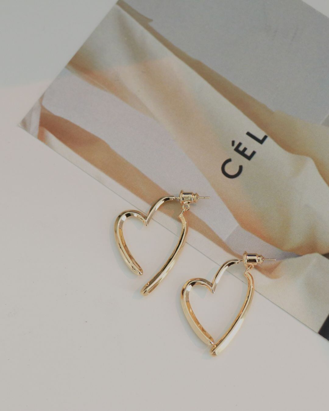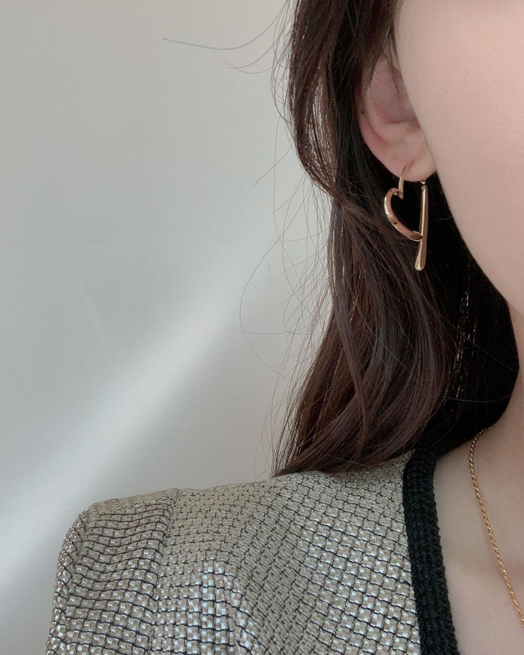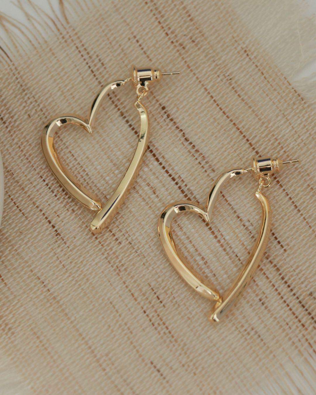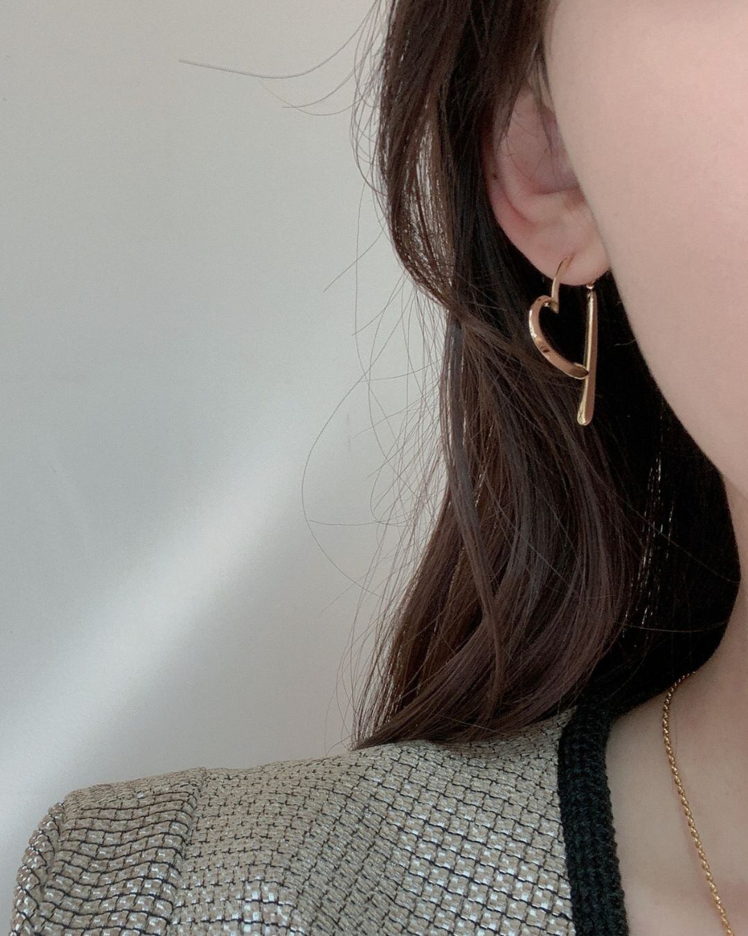 ゆるやかなラインで描かれたハートモチーフが可愛らしく、遊び心のあるデザイン。アシンメトリーでおしゃれ度アップ、耳元に軽やかな印象をプラスします。ピアスタイプとイヤリングタイプからお選びいただけます。