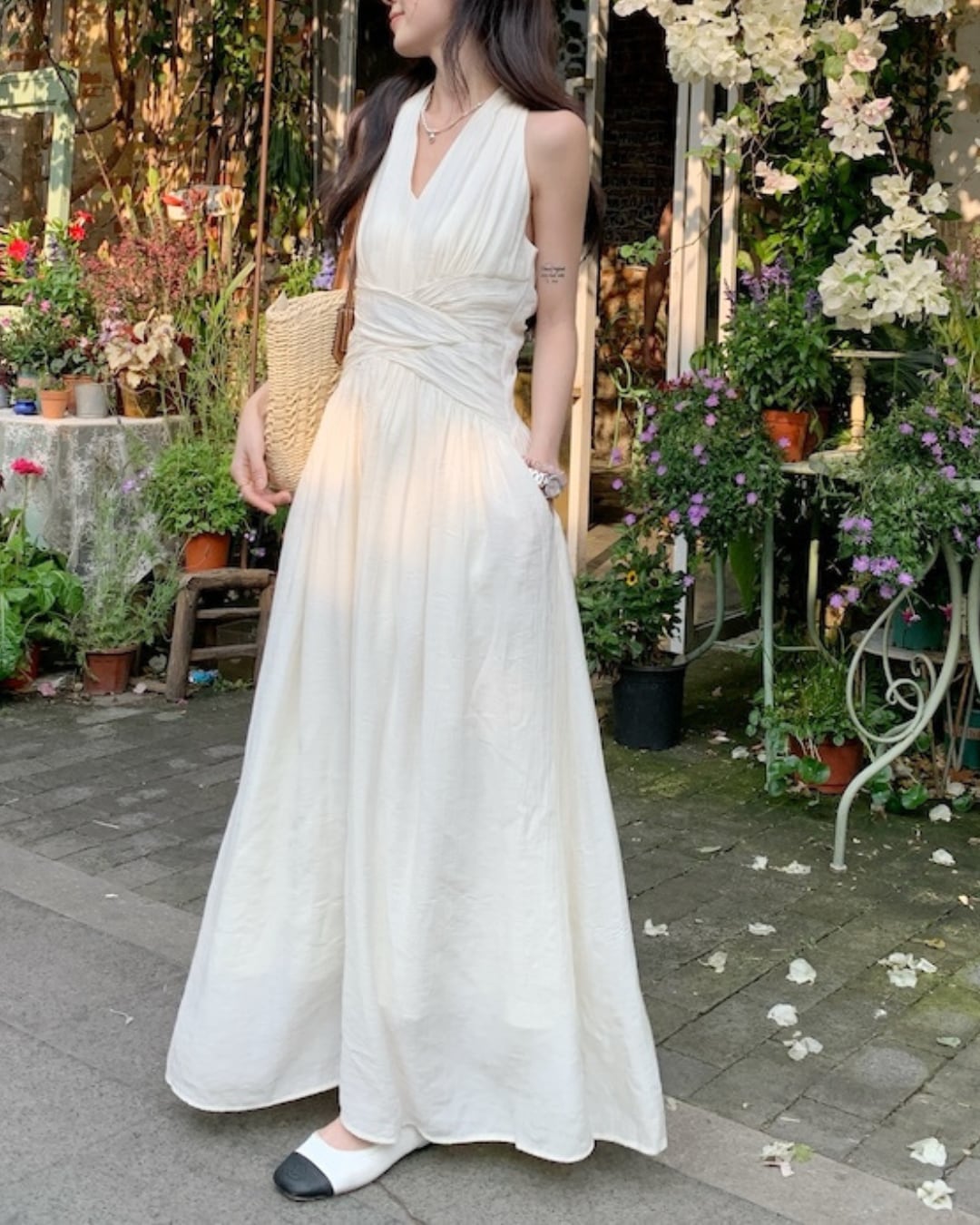#ホルターネック #Vネック #ロングワンピース #エレガント #フレンチスタイル #リゾートコーデ #大人可愛い