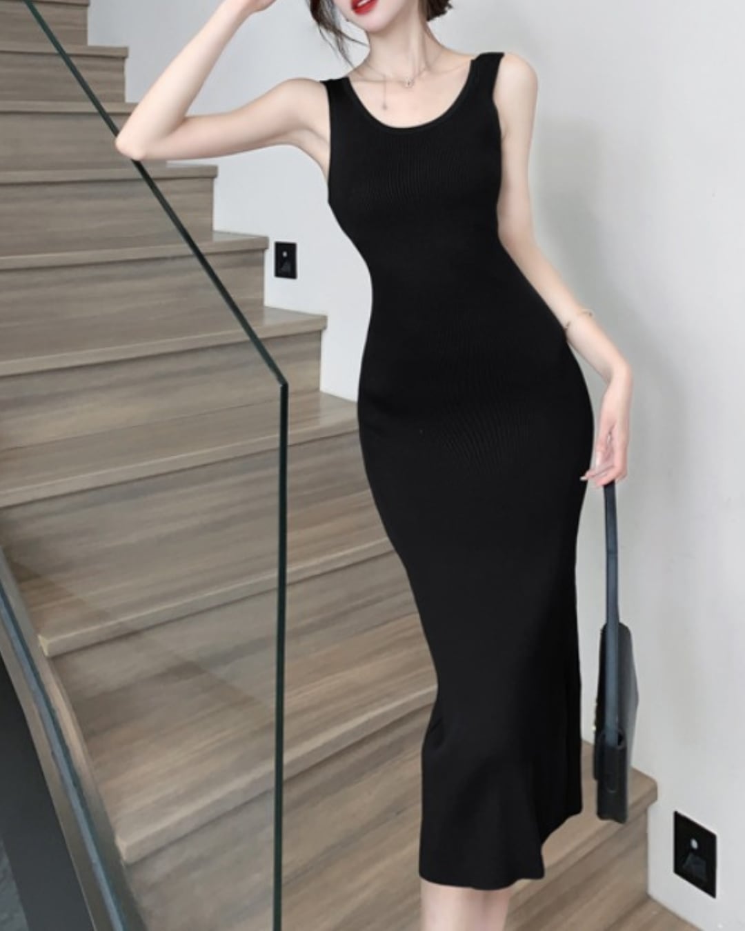 #リブニット #ノースリーブワンピース #タイトワンピ #フィットシルエット #夏コーデ #中長丈ワンピース