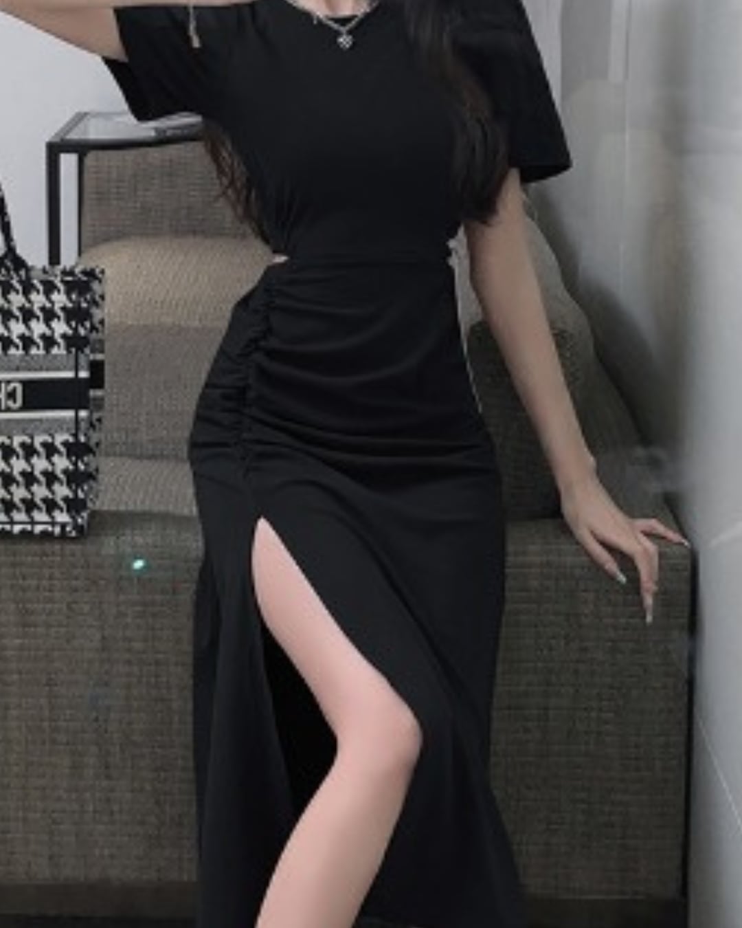 #カットアウト #ドレープデザイン #スリットワンピ #美脚見せ #ウエストマーク #サマーコーデ