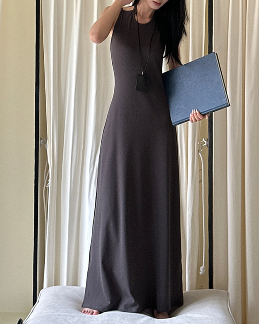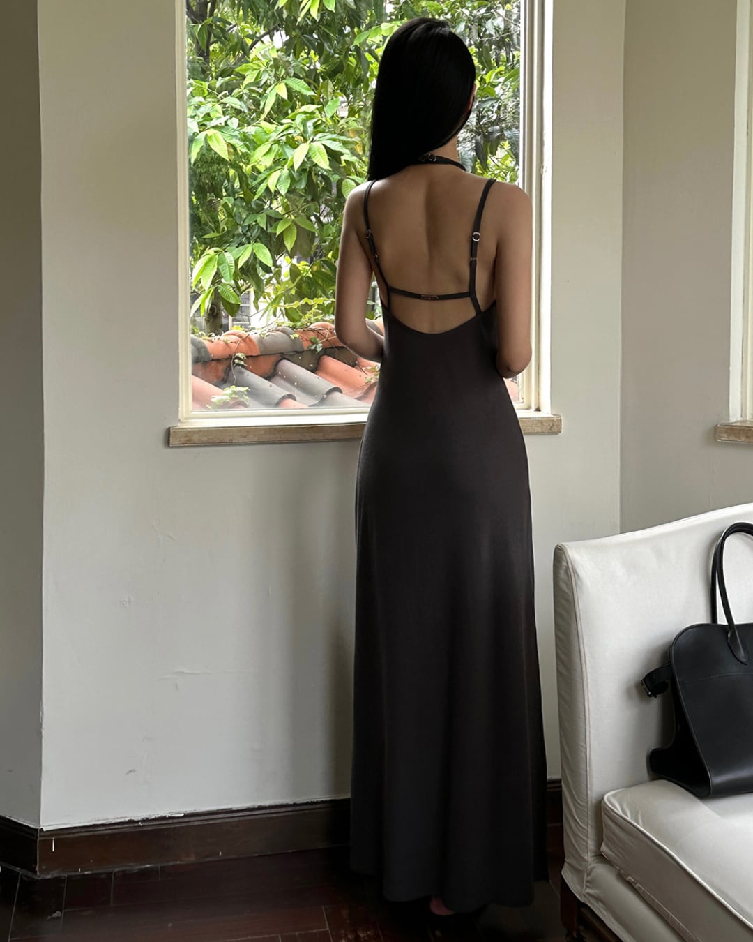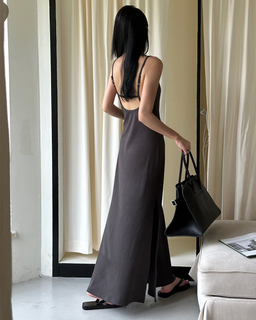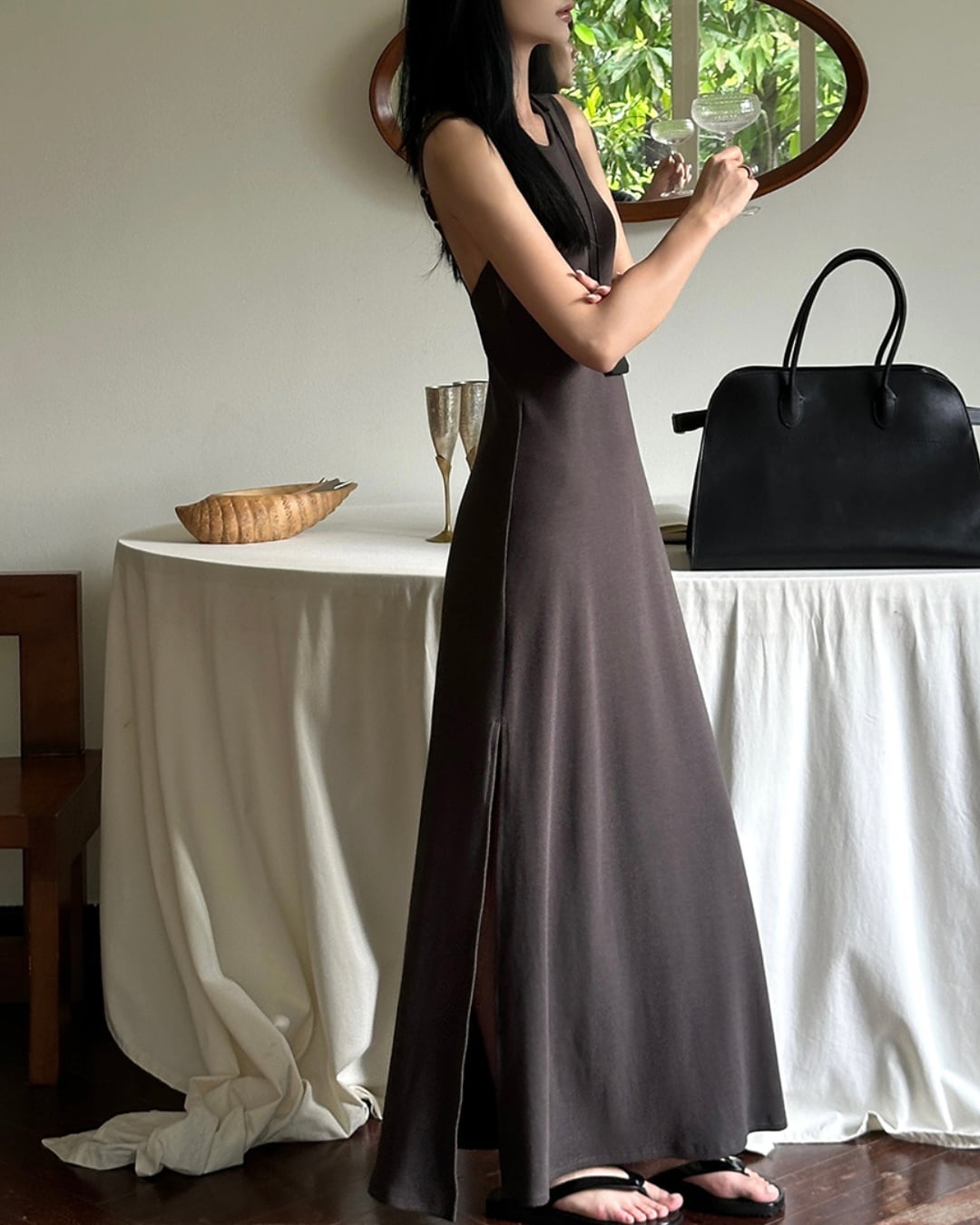 #バックオープン #スリットワンピース #ノースリーブ #ロングワンピース #ダークグレー #夏ワンピ #モードコーデ