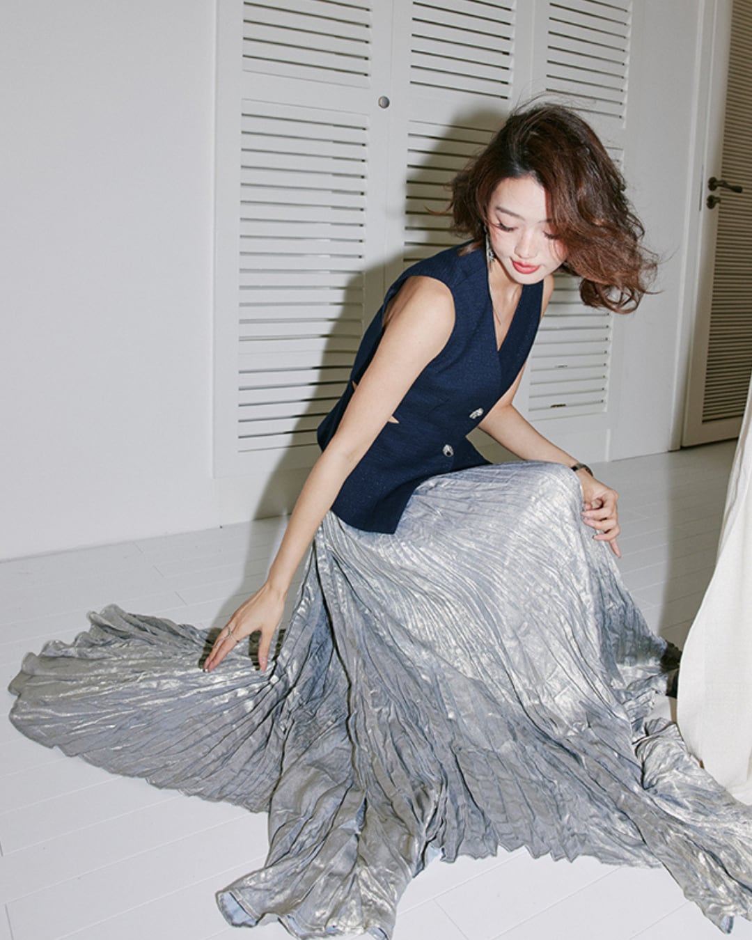 #アシンメトリースカート #プリーツスカート #リラックスコーデ #夏スカート #軽やかスタイル #大人フェミニン