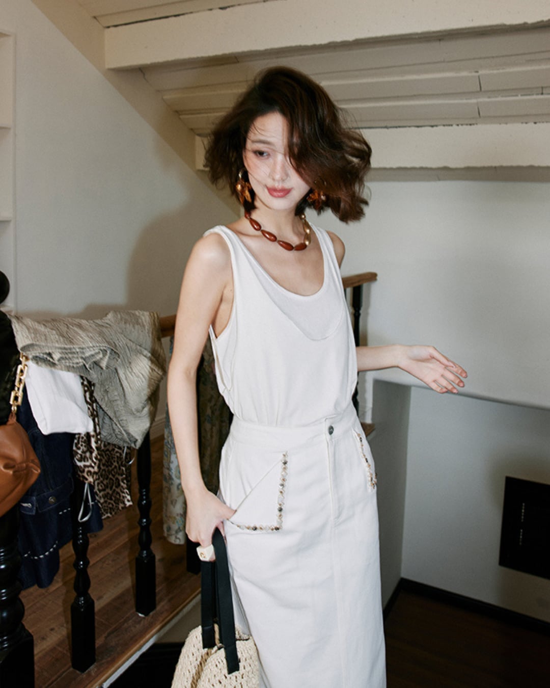 #レイヤード風トップス #タンクトップ #ホワイトコーデ #シンプルスタイル #抜け感コーデ #重ね着風