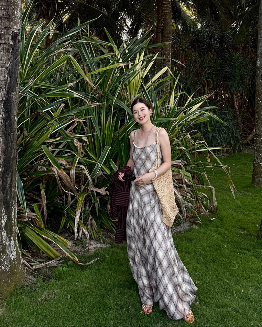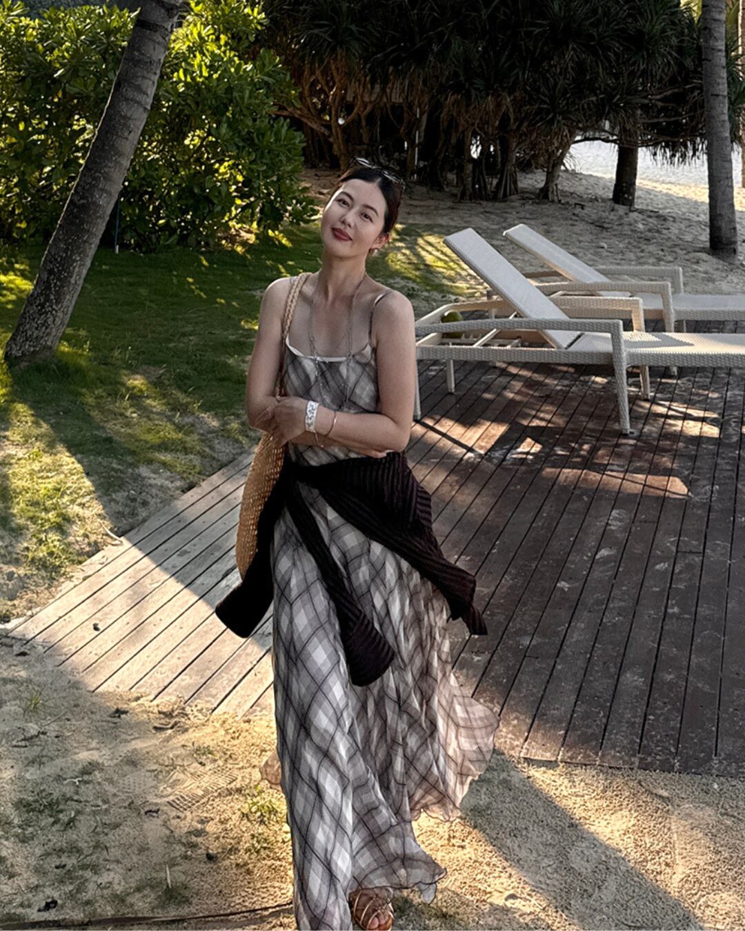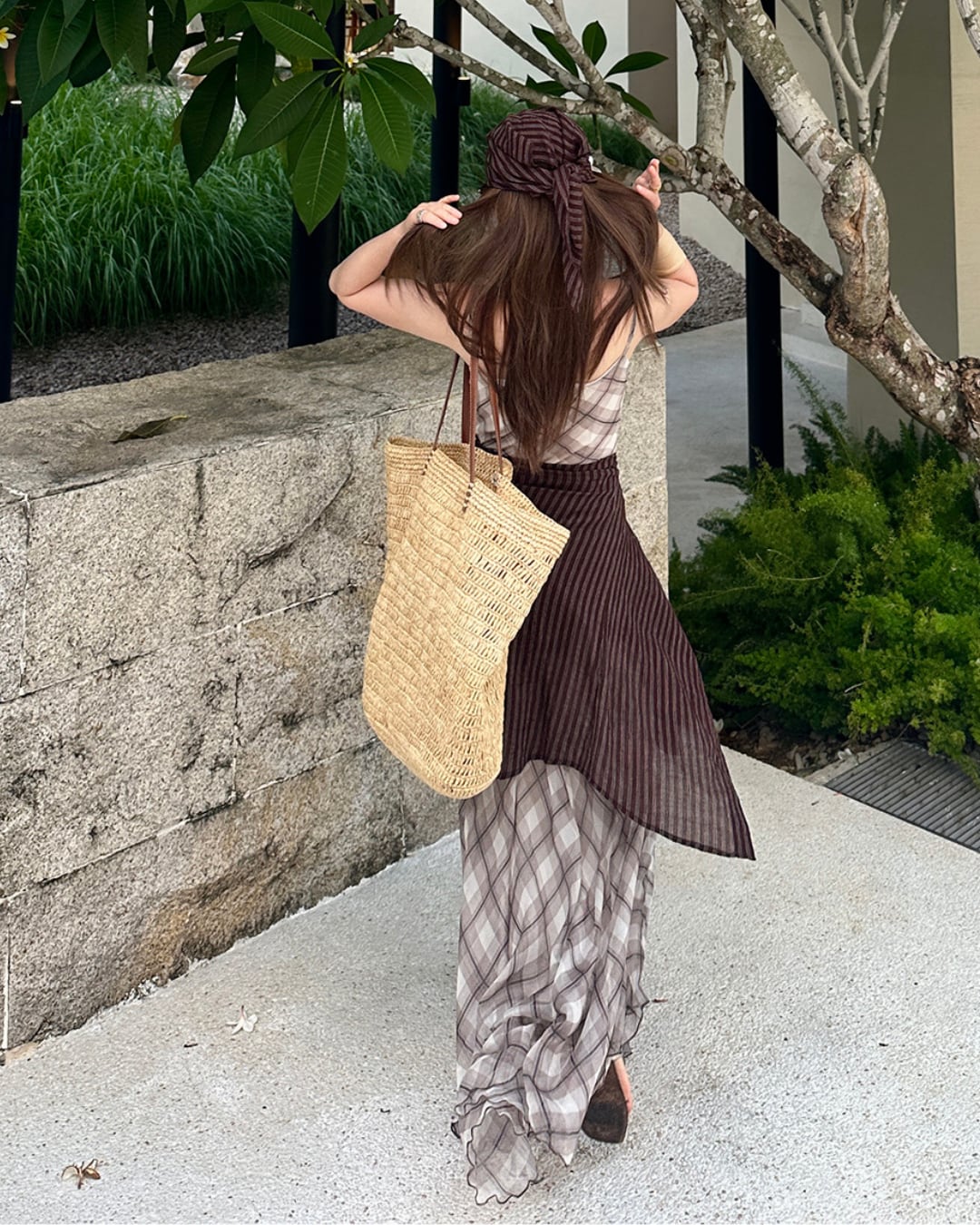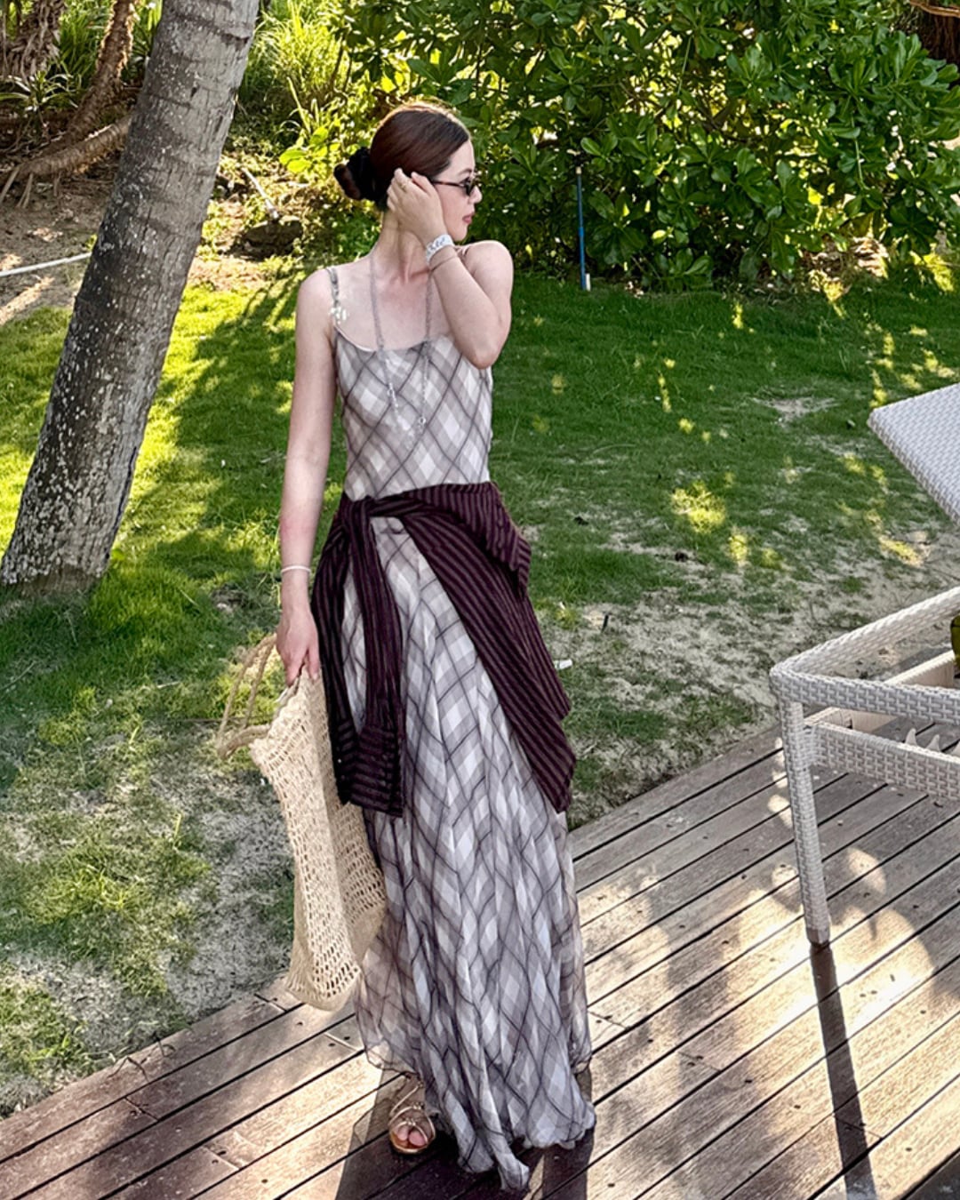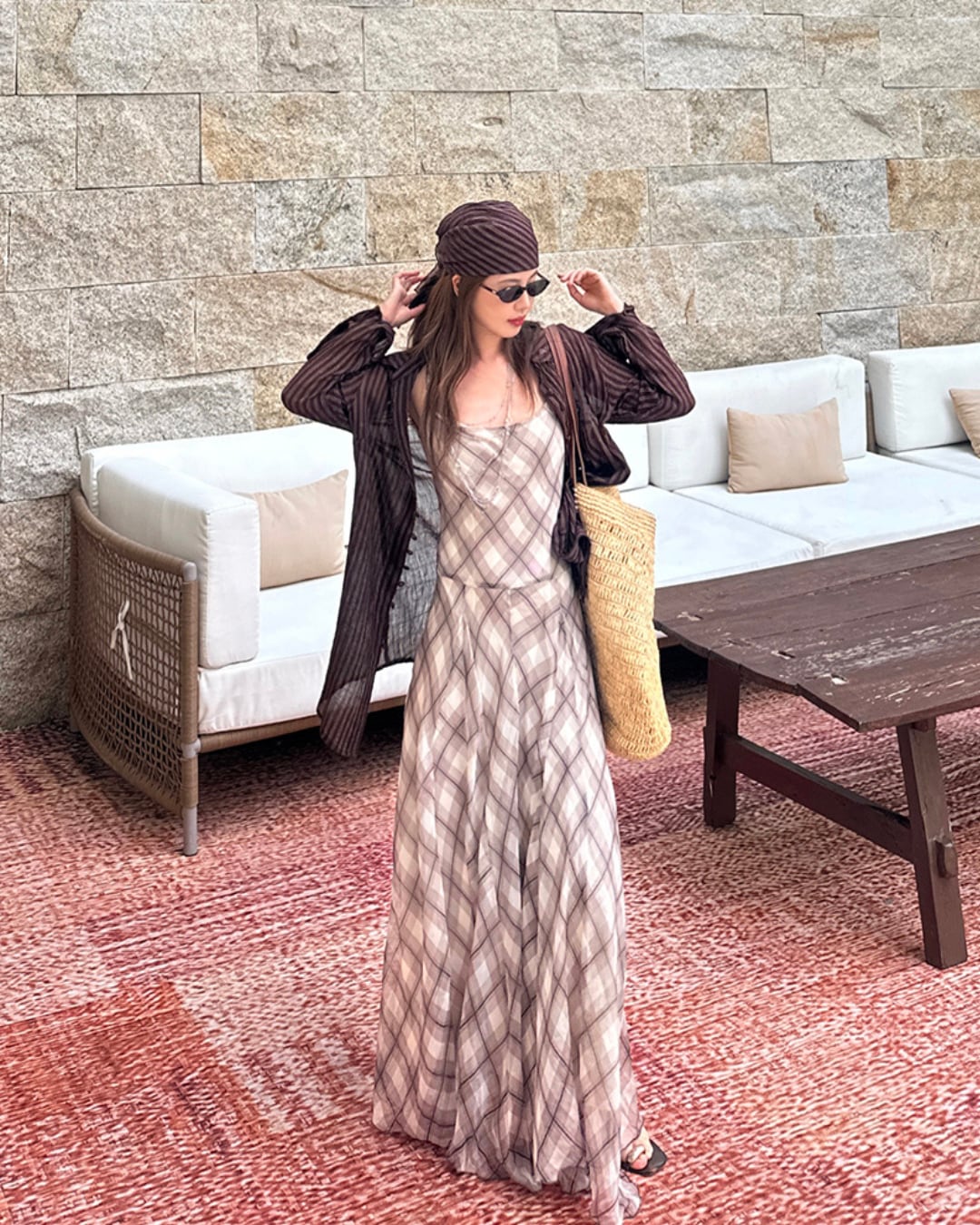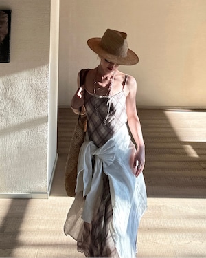 #チェック柄 #キャミソール #フレアワンピース #リゾートスタイル #フェイクシルク #ヴィンテージ風