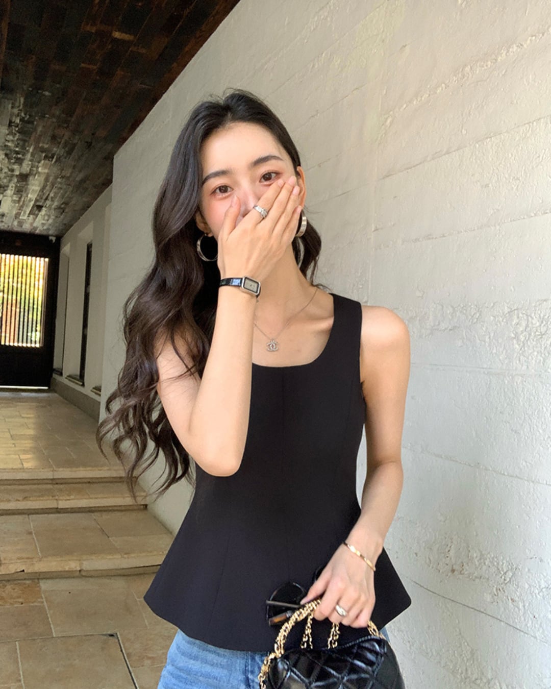#ペプラム #ノースリーブ #Uネック #裏地付き #高級感 #美シルエット #定番カラー