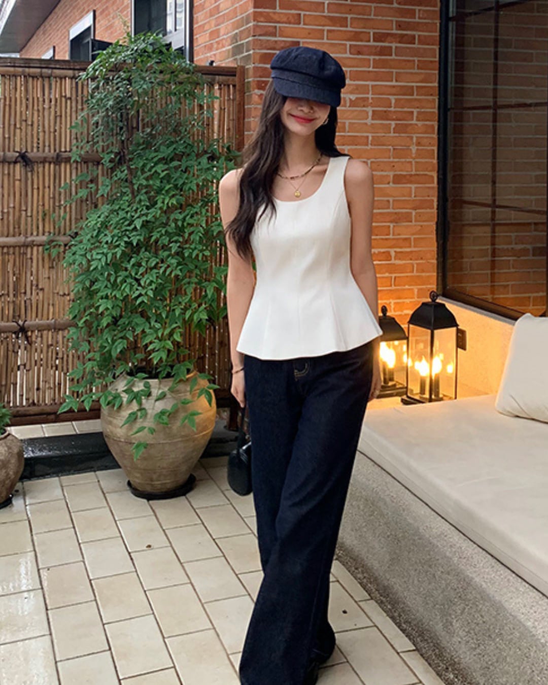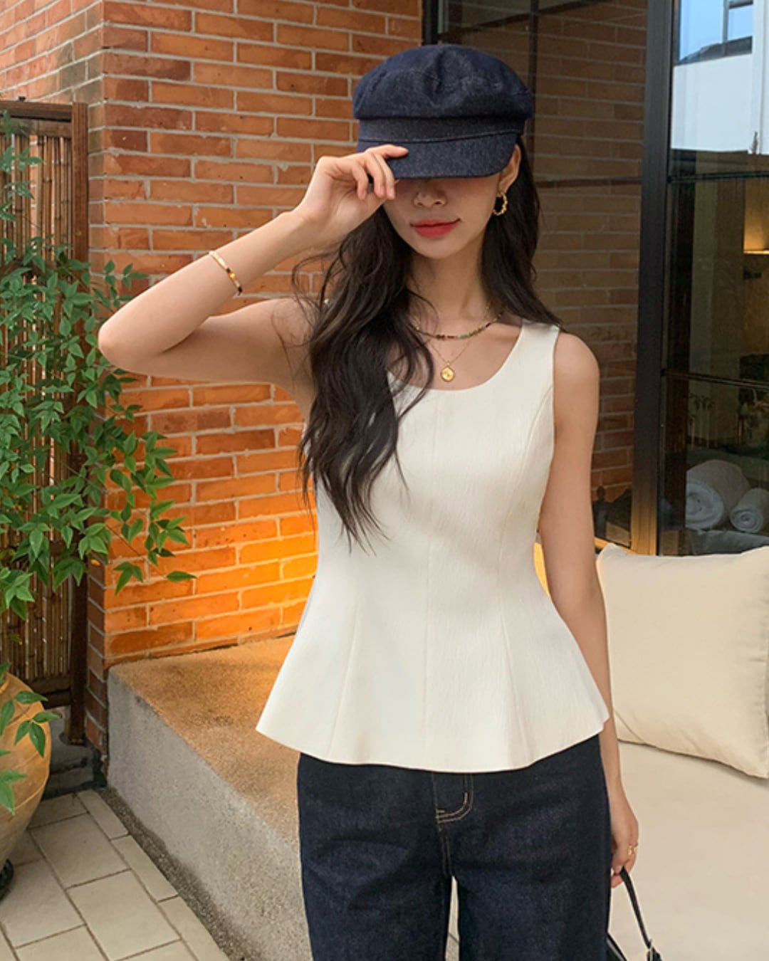 Uネックペプラムノースリーブトップス S25395