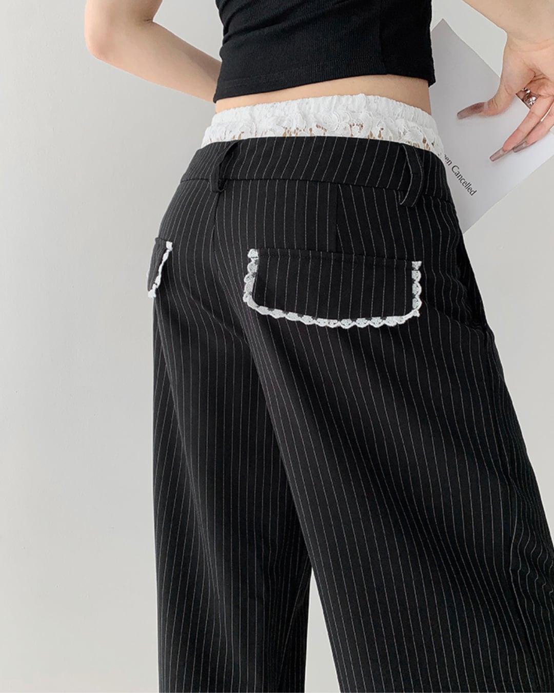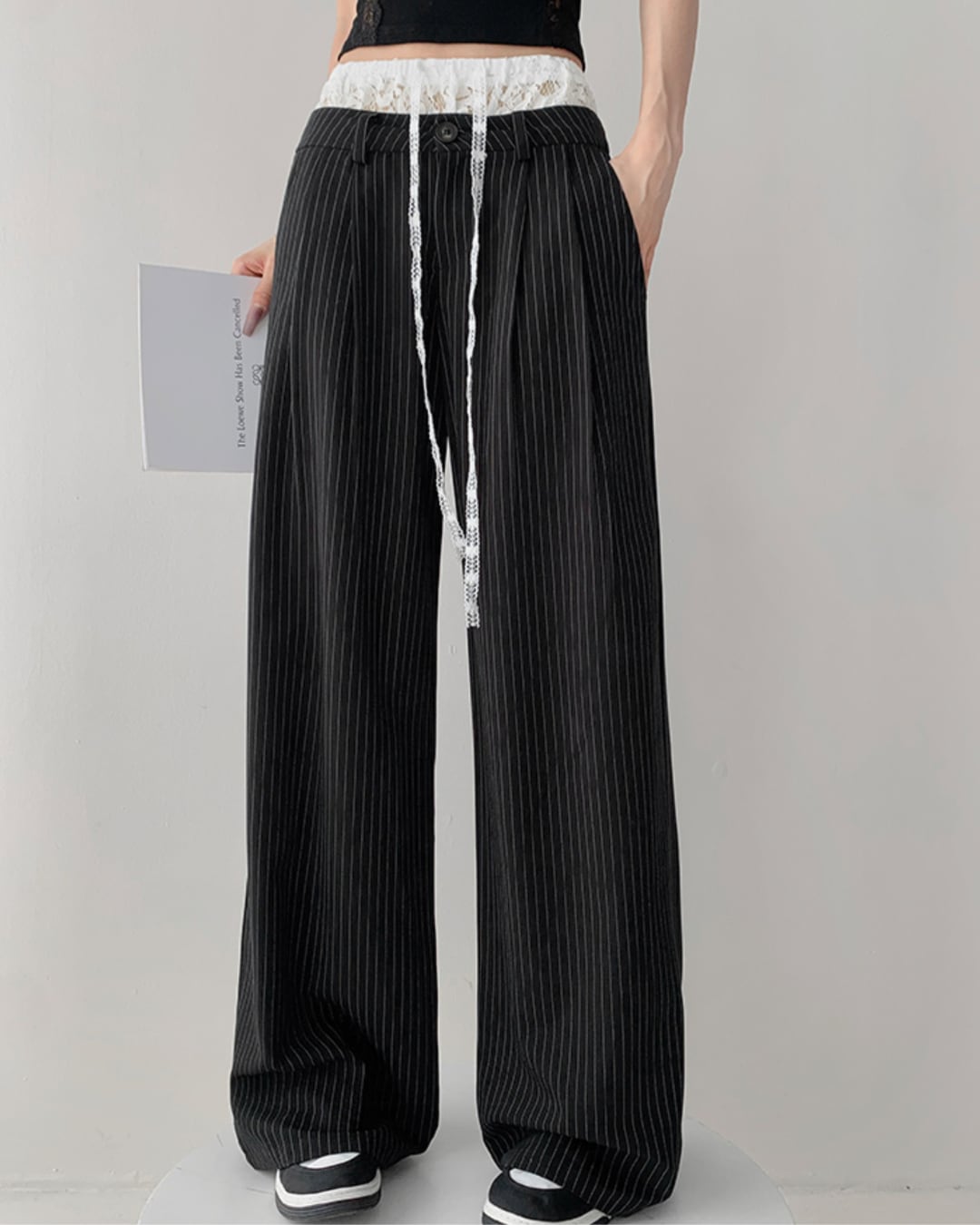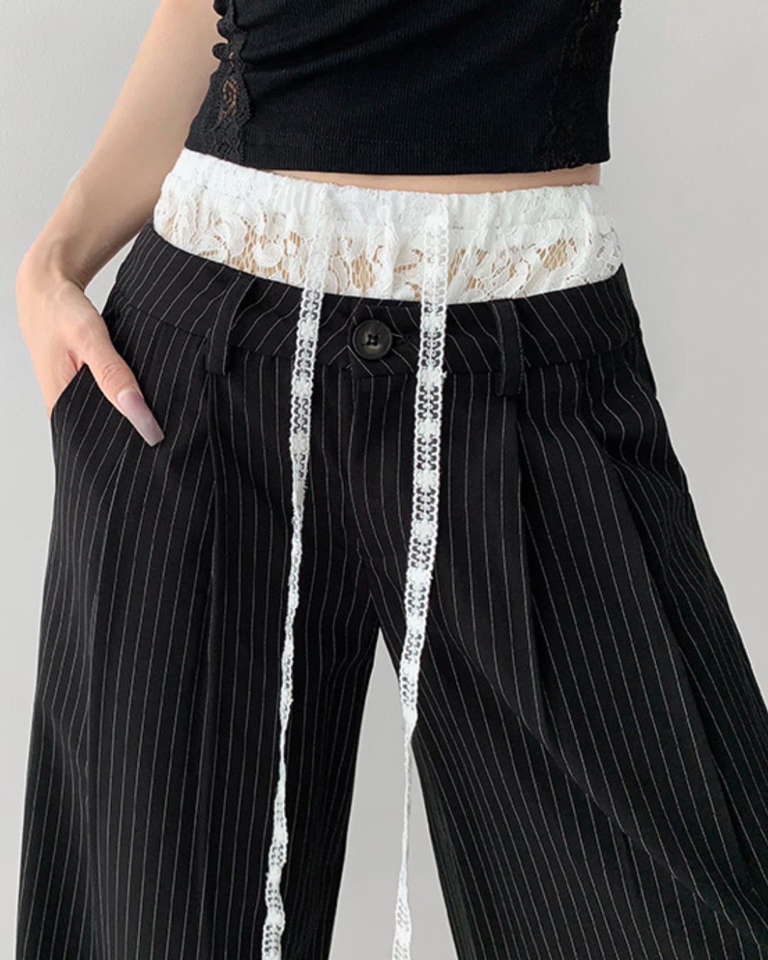 #ルームウェア #ストライプパンツ #レースウエスト #ワイドシルエット #ポケット付き #リラックススタイル #おうち時間