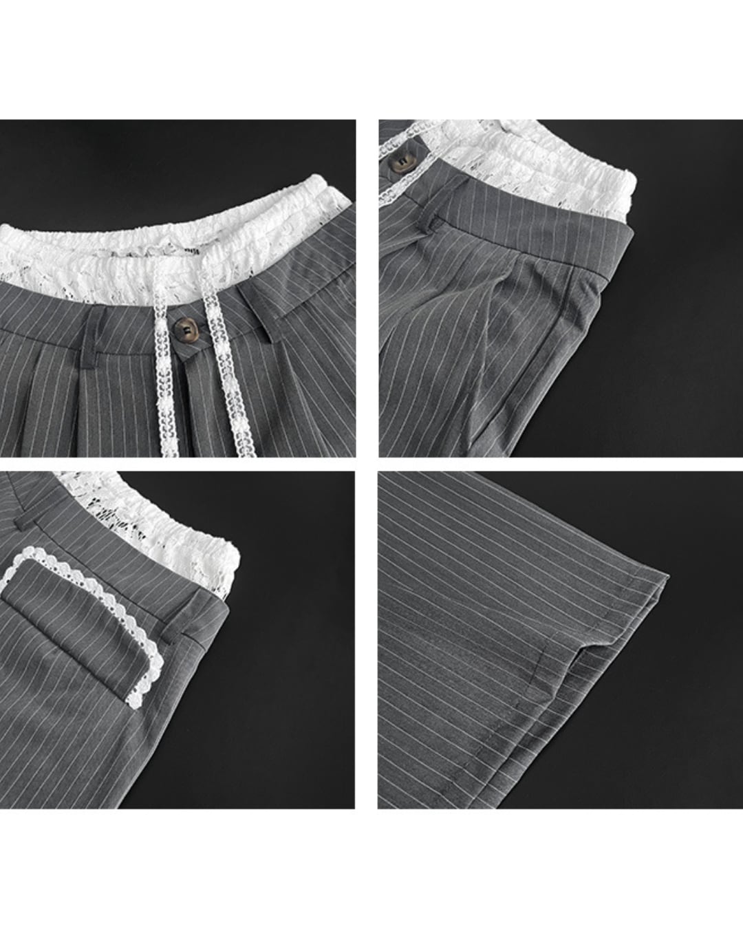 ウエストに施されたレースとリボンがフェミニンな印象を添えるストライプ柄ルームパンツ。ゆったりとしたワイドシルエットで脚のラインをカバーしつつ、リラックス感のある履き心地。さらっとした肌触りと動きやすさを兼ね備えたデザインで、おうち時間はもちろんワンマイルウェアとしても活躍します。便利なポケット付き。
