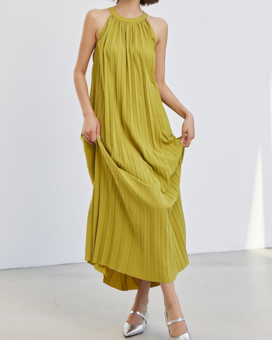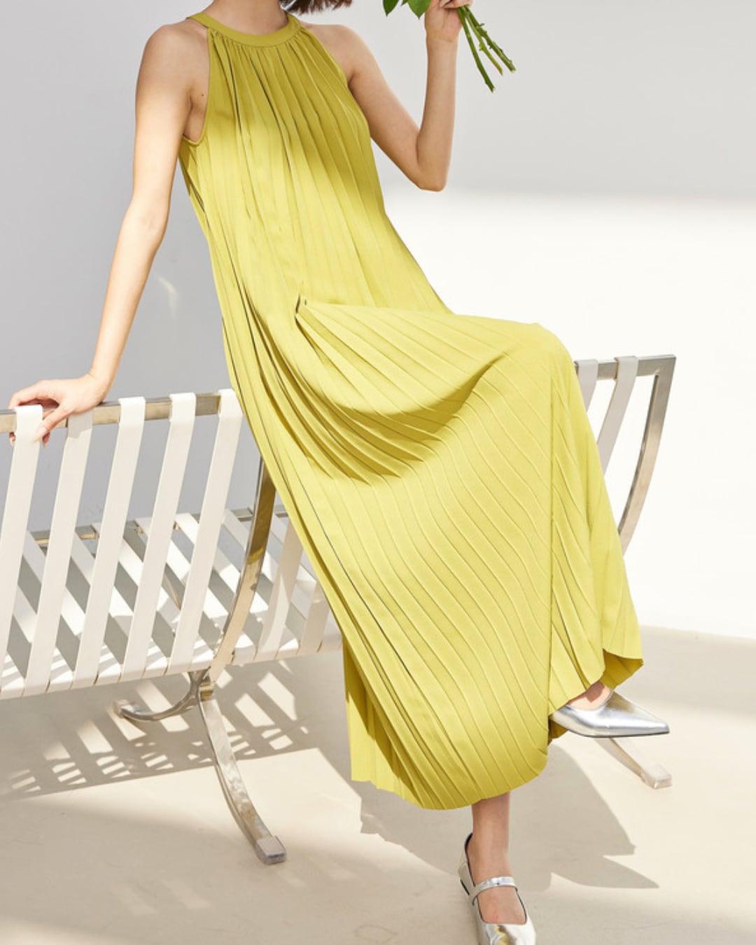 軽やかな素材と動きのあるプリーツデザインが魅力のノースリーブロングワンピース。涼しげなオリーブグリーンが夏らしく、華奢な肩回りとゆったりとしたシルエットでフェミニンさを引き立てます。さらっと着るだけで上品な印象に。サンダルやヒールとの相性も◎