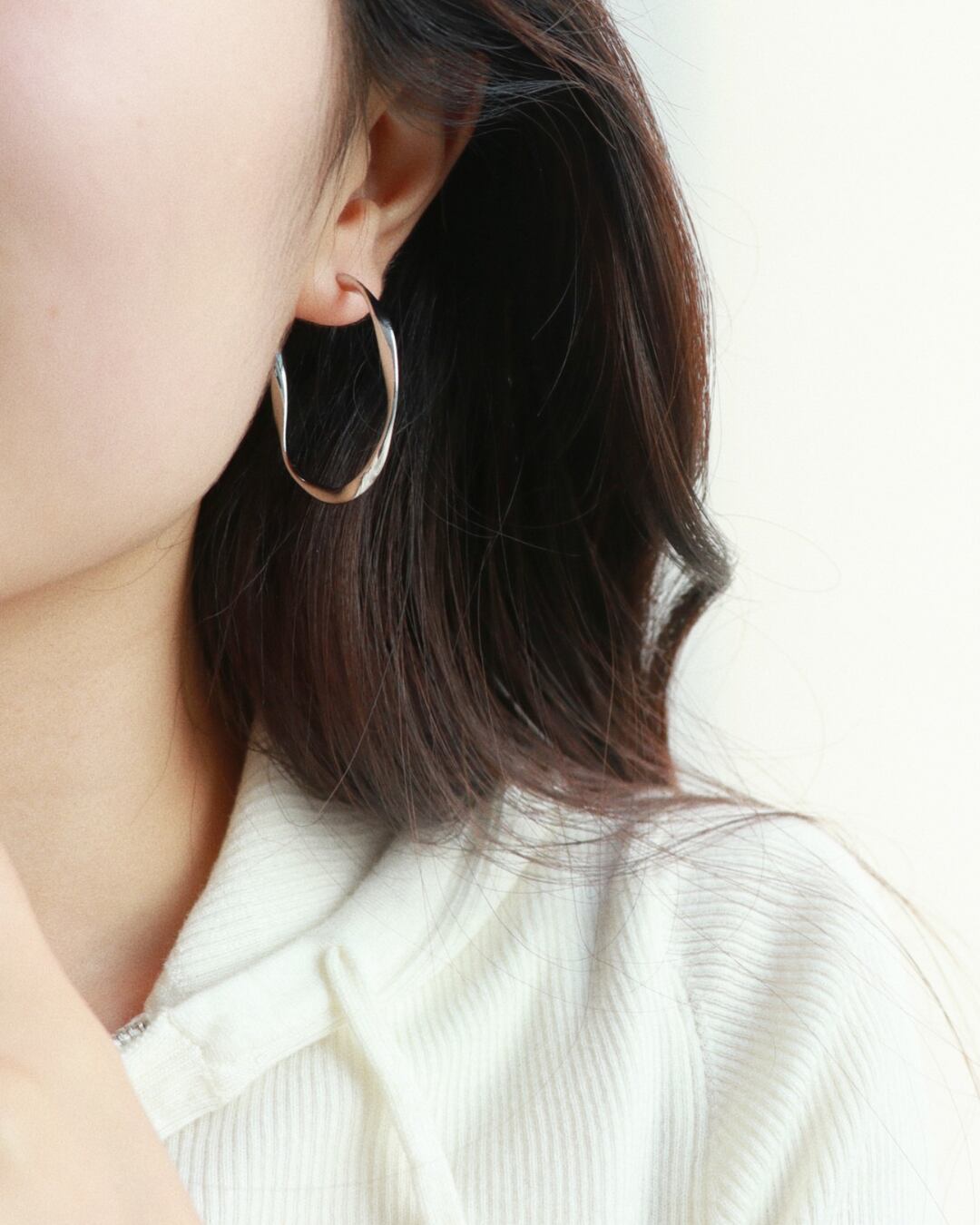 #イヤリング #フープイヤリング #ツイストデザイン #シンプルアクセ #ゴールドアクセ #シルバーアクセ #上品コーデ