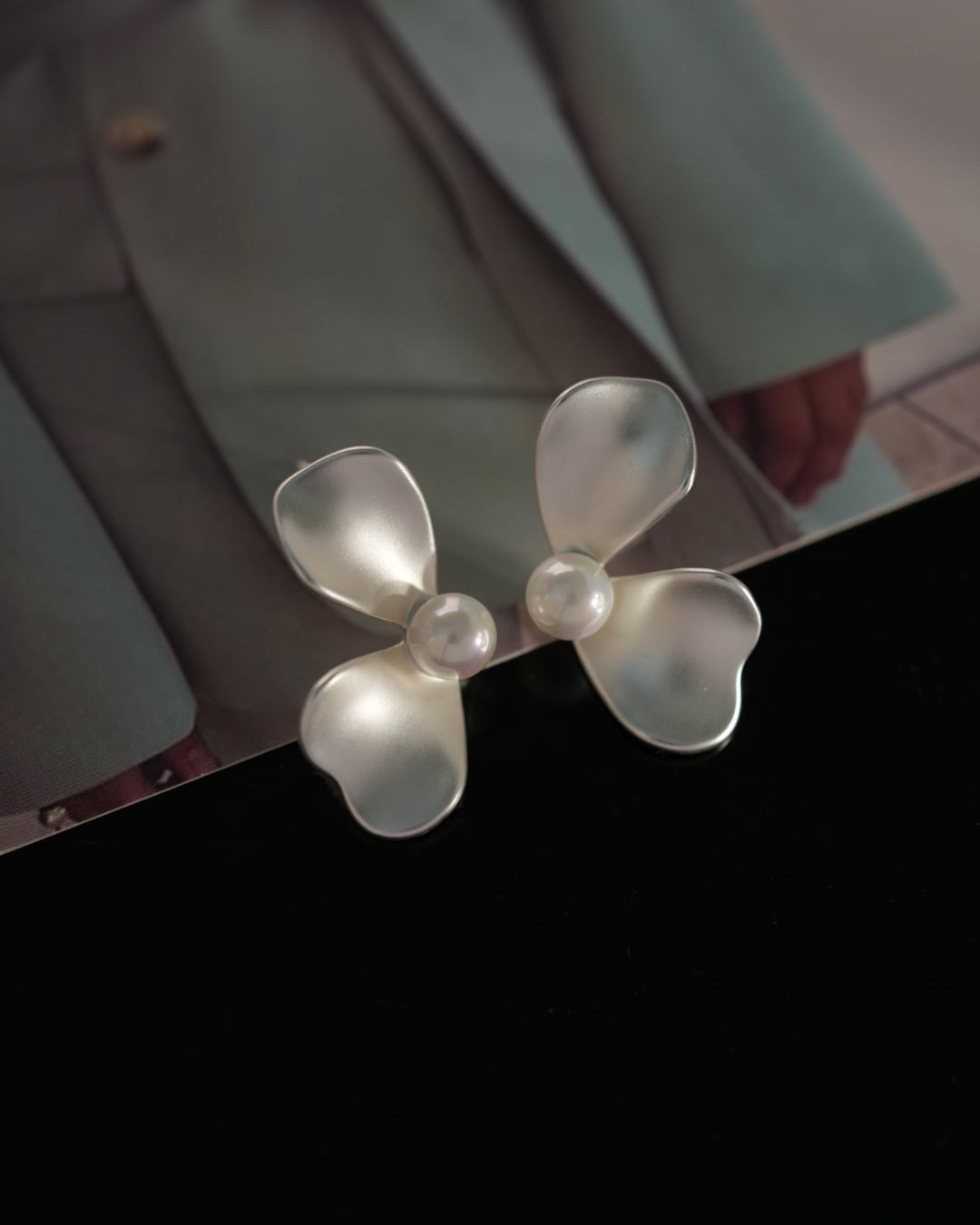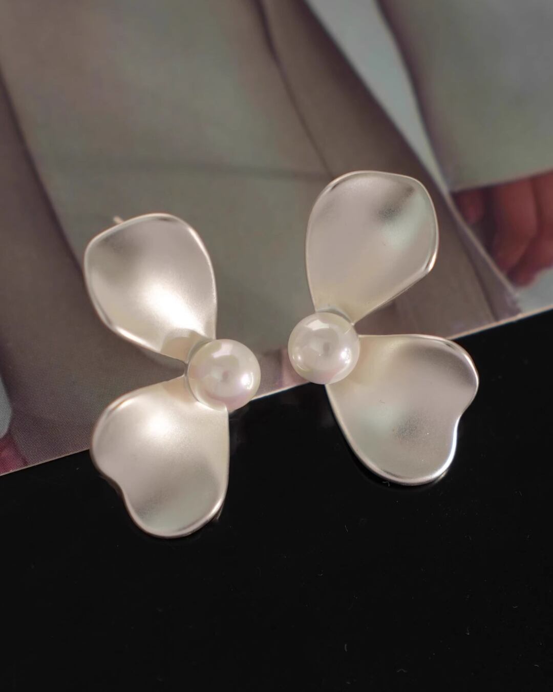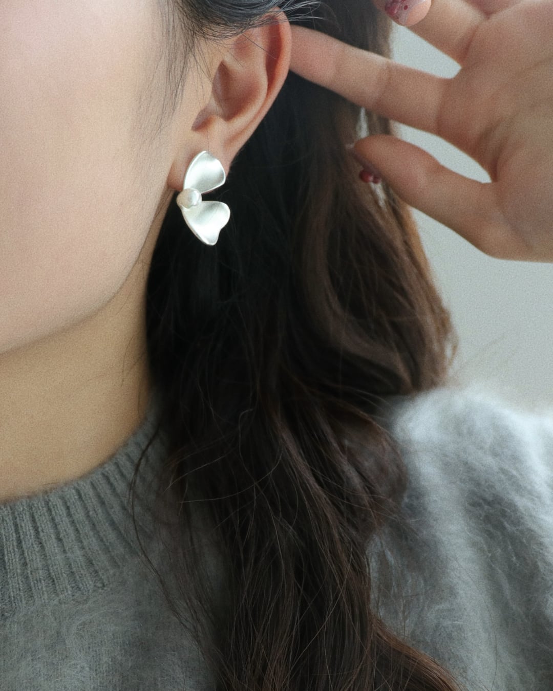 #フラワーモチーフ #シルバーアクセ #パールピアス #フェミニンコーデ #存在感ピアス #大ぶりアクセ