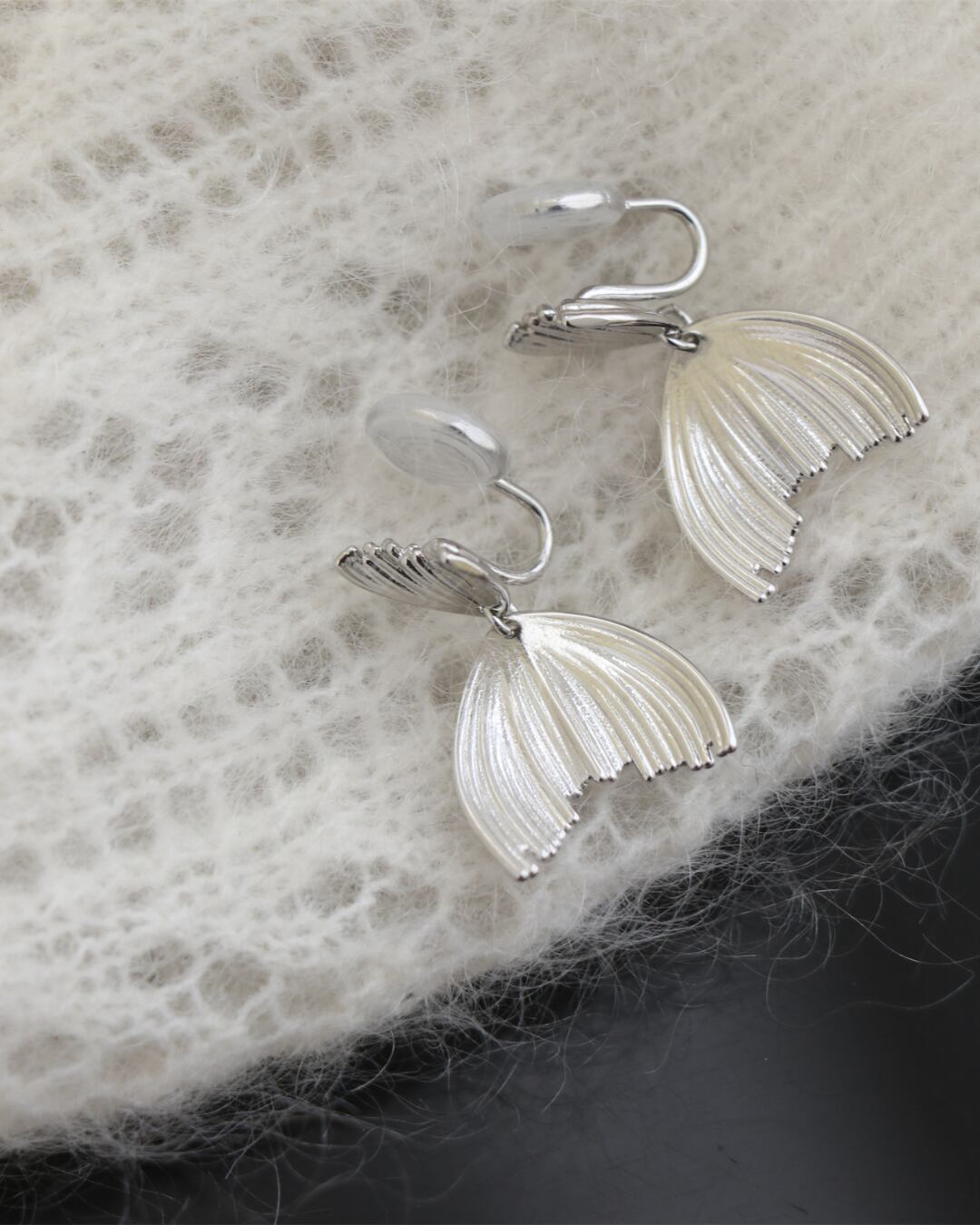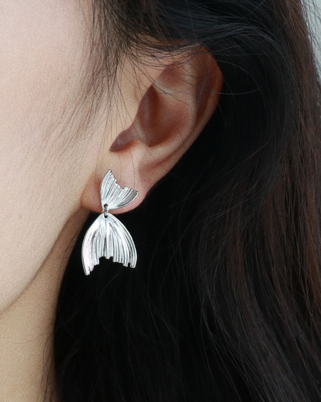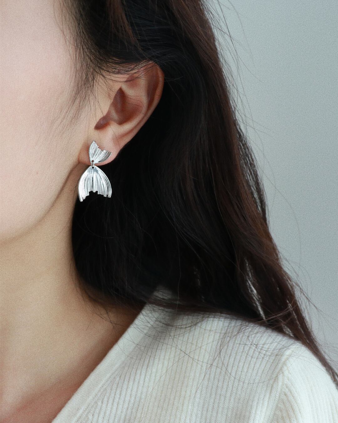 繊細な彫り込みで表現されたマーメイドテールモチーフのシルバーピアス。動くたびに揺れるデザインが女性らしく、顔まわりにさりげなく華やかさをプラスします。ピアス穴のない方でも着用できるイヤリングタイプもご用意。普段使いにも特別な日にも映える上品アクセサリーです。