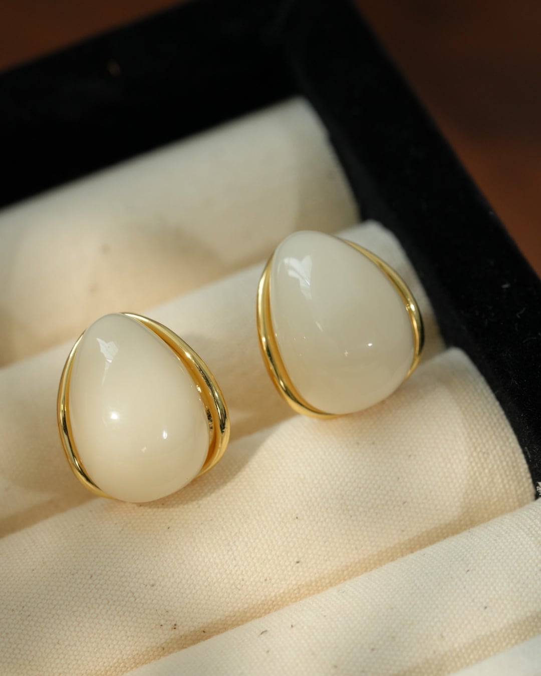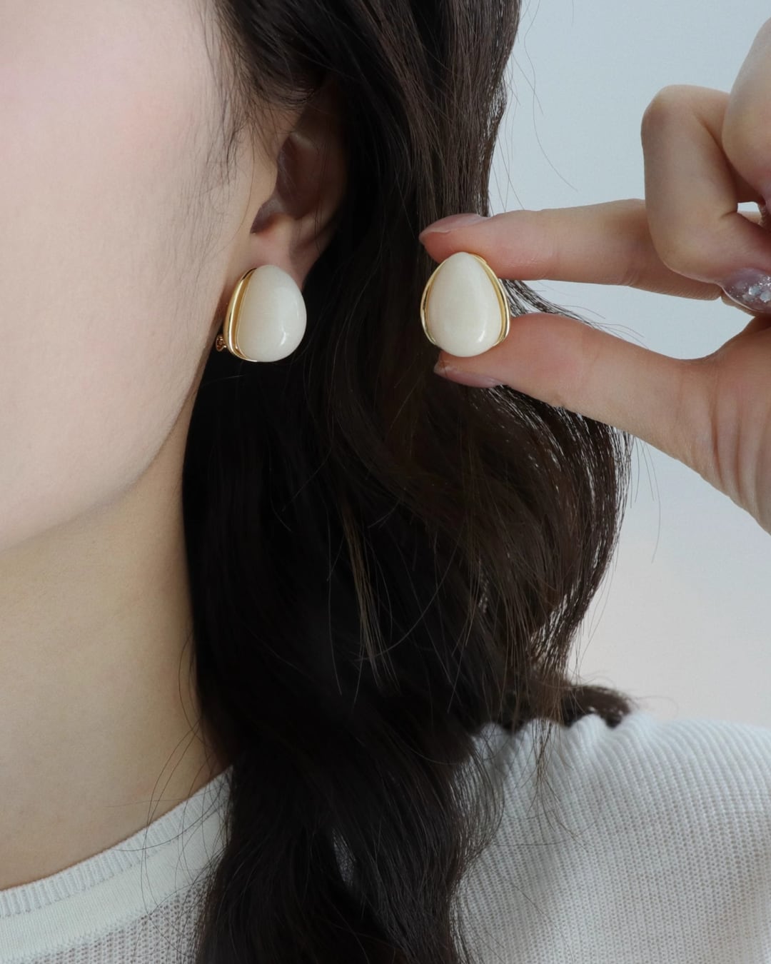 しずく型のフォルムが美しい、レトロカラーのピアスです。樹脂とゴールドトーンの金属が耳元に華やかさを添え、上品でフェミニンな印象に。普段使いから特別な日まで幅広く活躍します。
