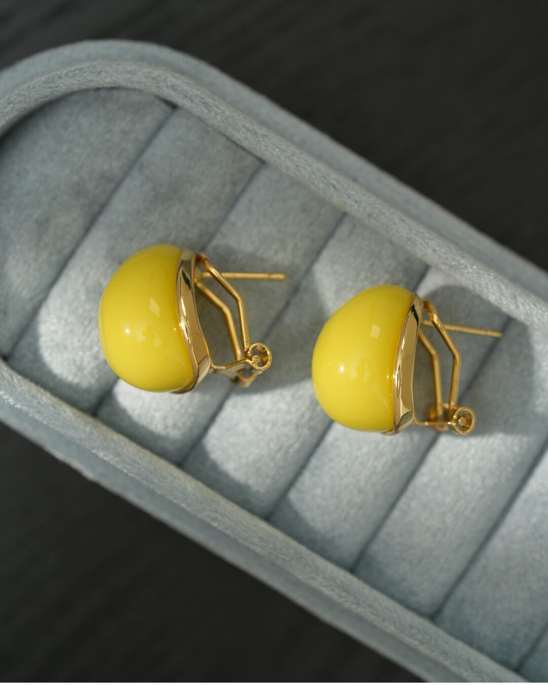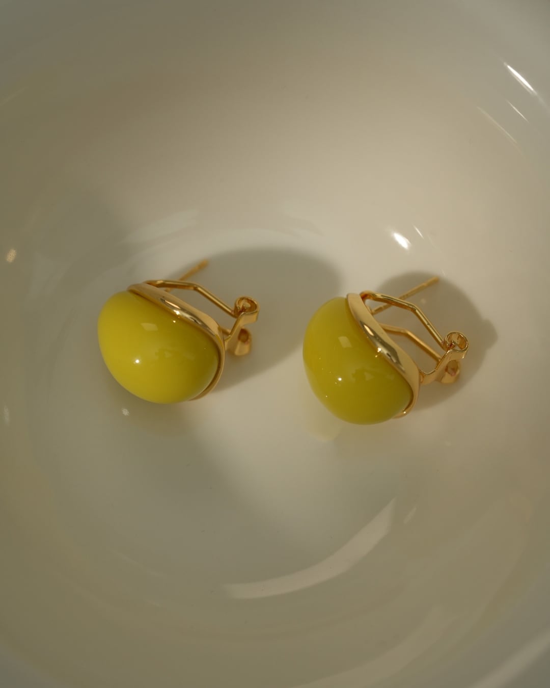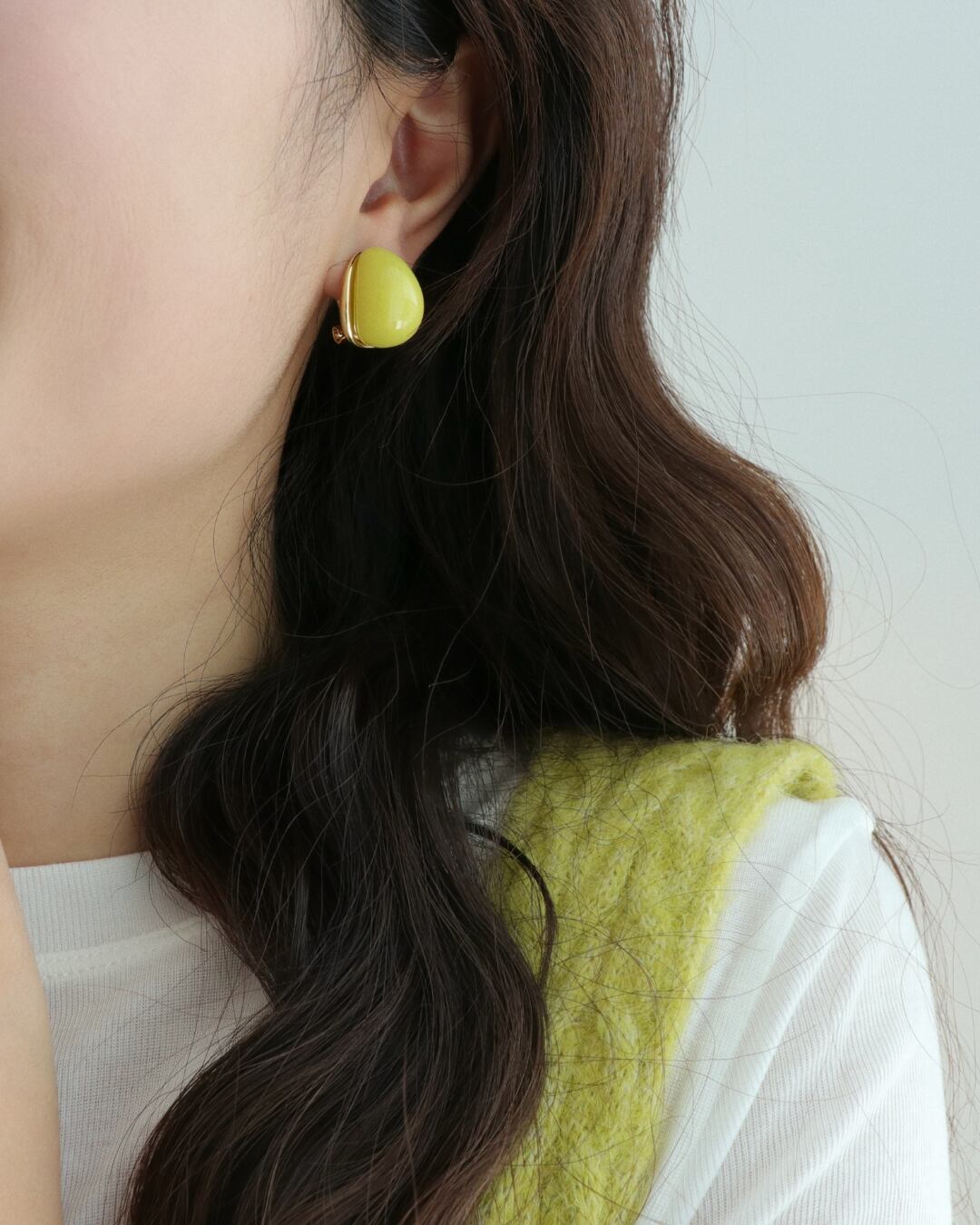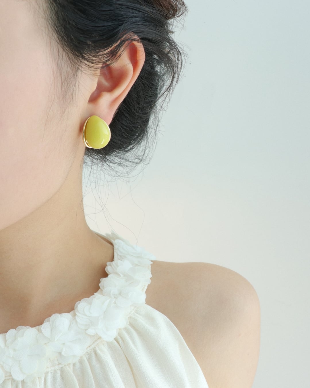#レトロ #しずく型 #ピアス #イエローアクセ #シンプル可愛い #フェミニンコーデ