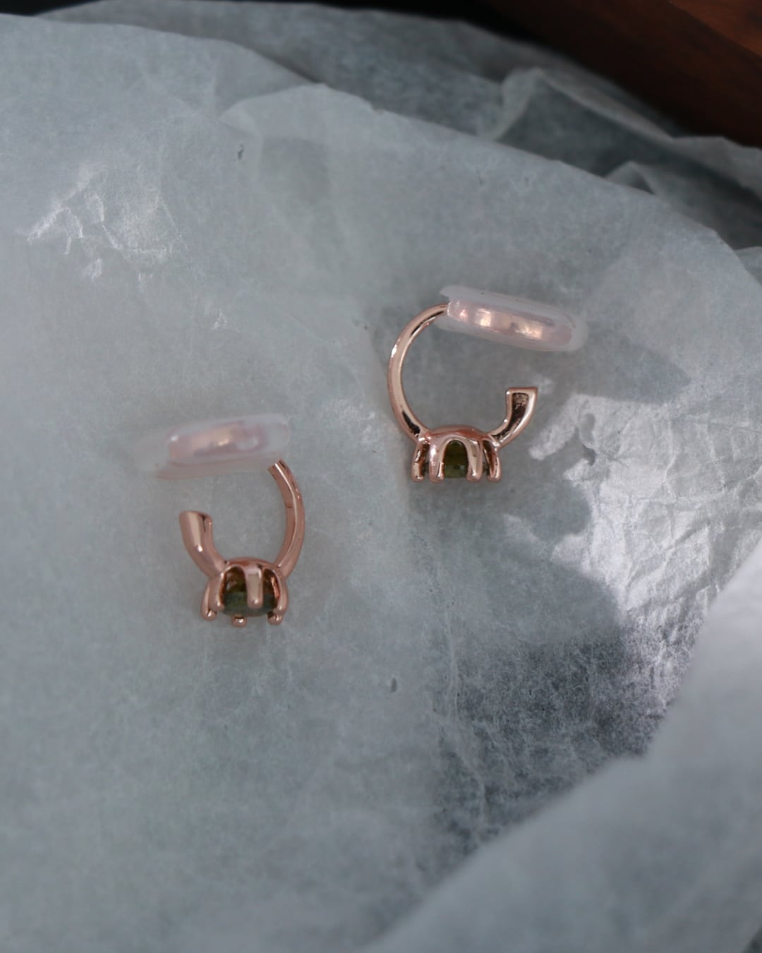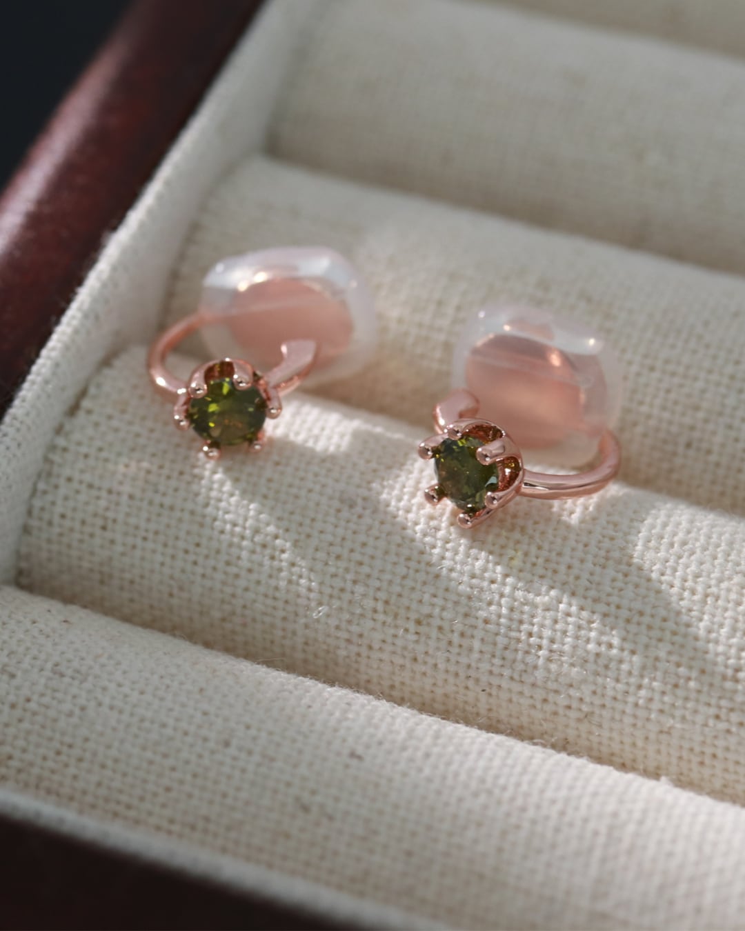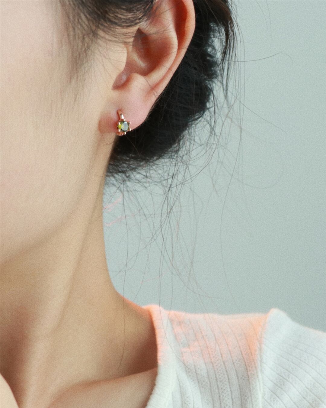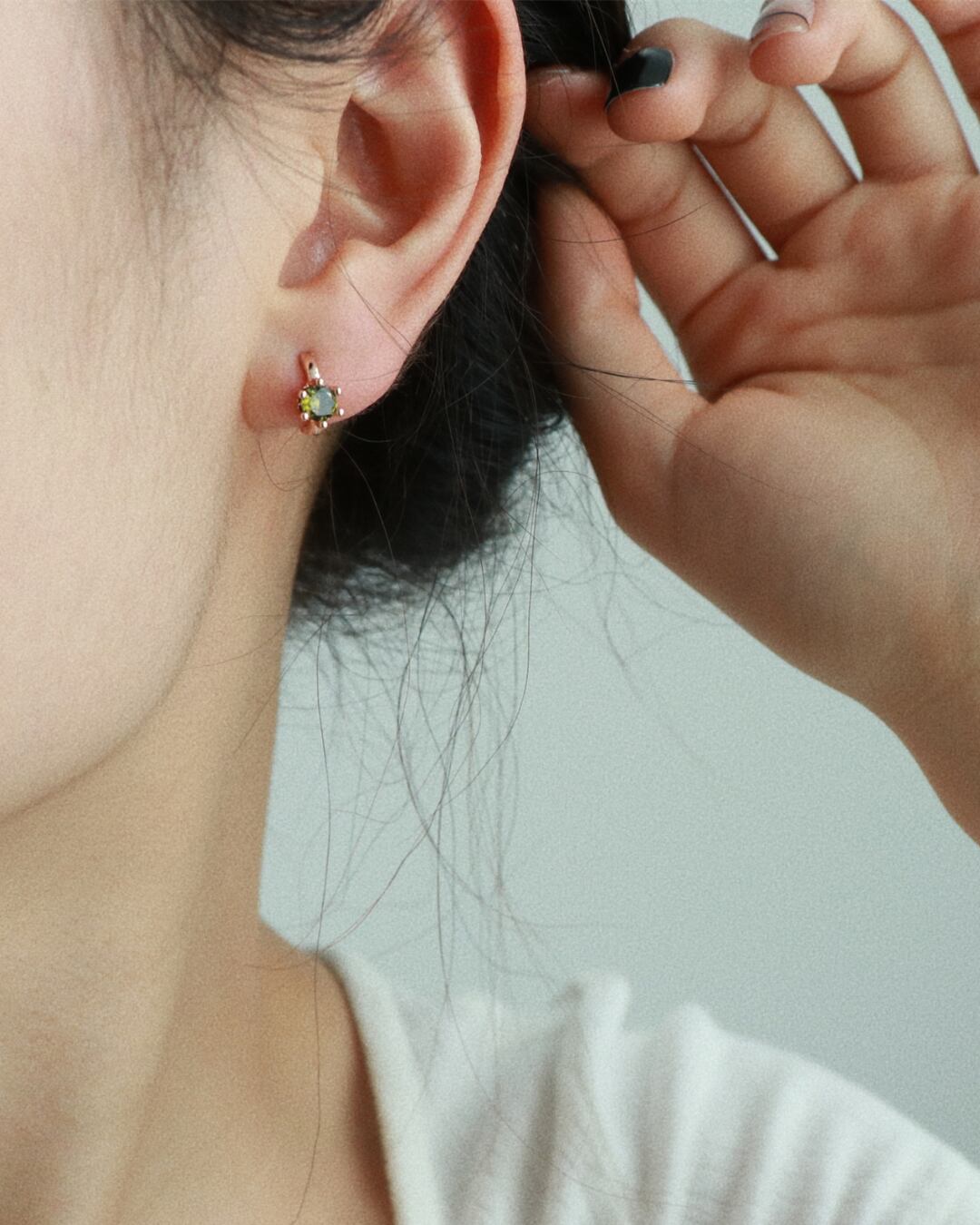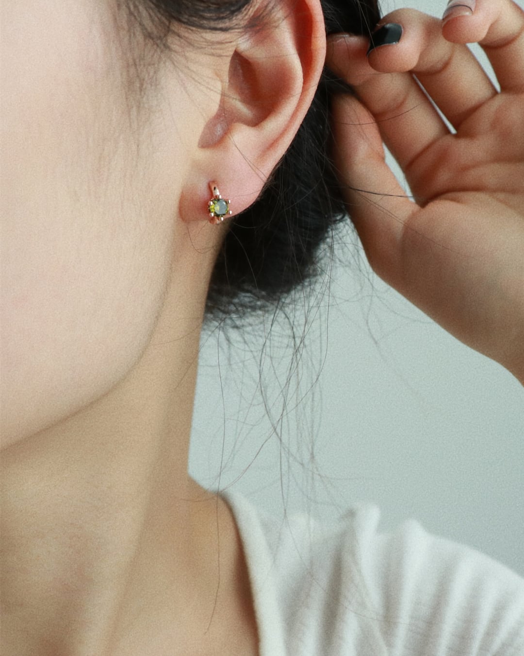 深みのあるグリーンストーンが美しく輝く、小ぶりながら目を引くミニピアス。落ち着いた色味とさりげない華やかさが、上品な印象をプラスしてくれます。イヤリングタイプもあるので、ピアスホールがない方にもおすすめです。