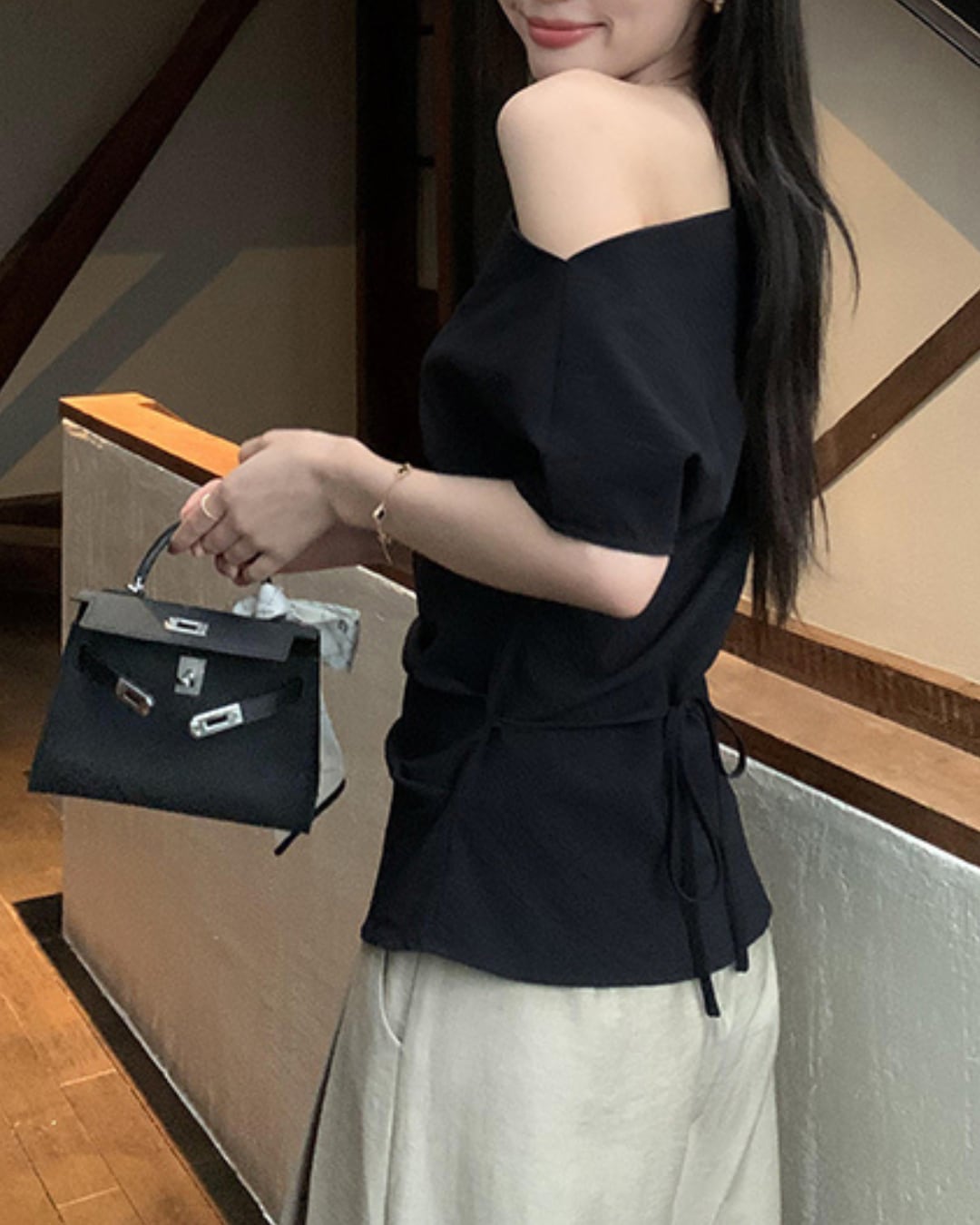 #ワンショルダー #スリムトップス #肩見せスタイル #きれいめカジュアル #夏トップス #ブラックコーデ