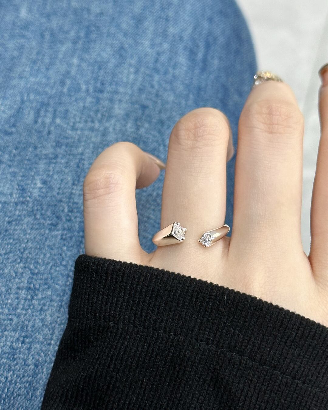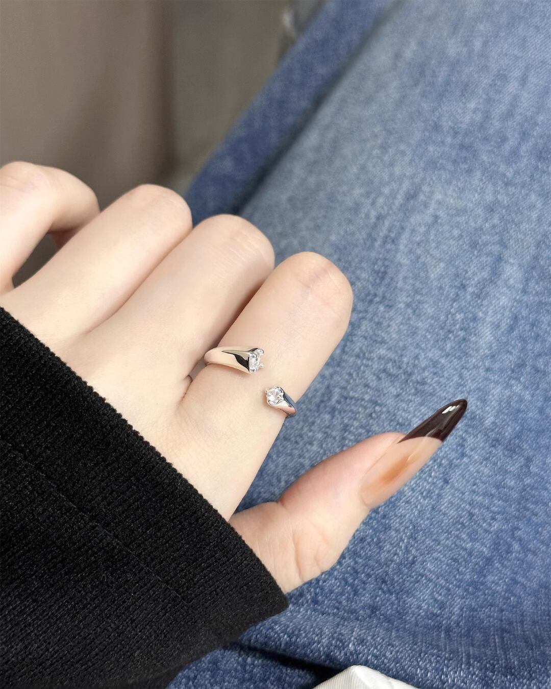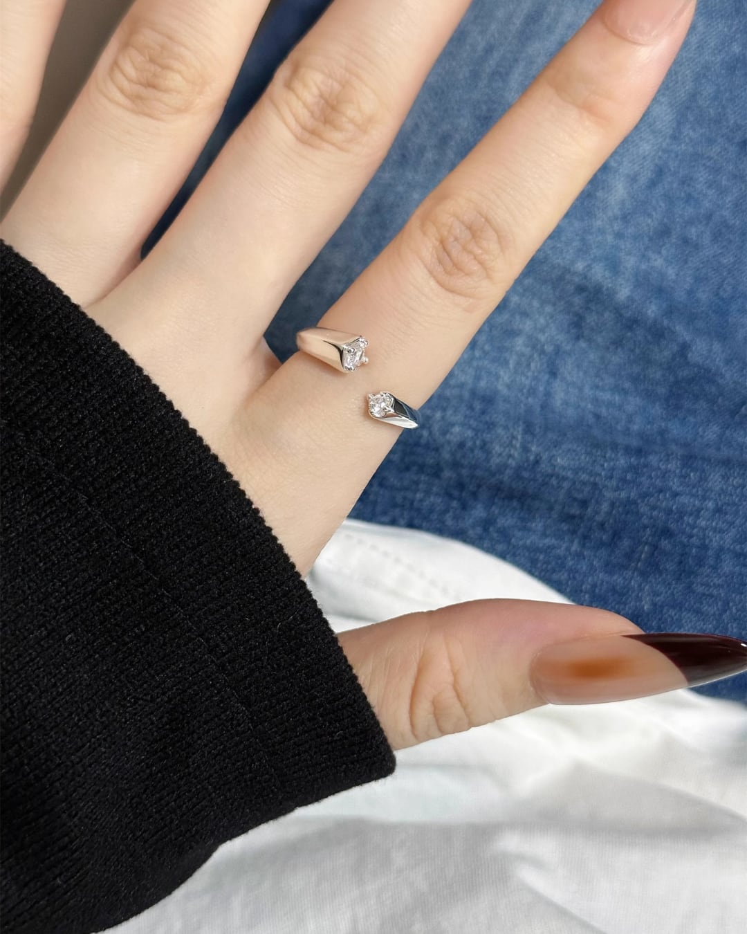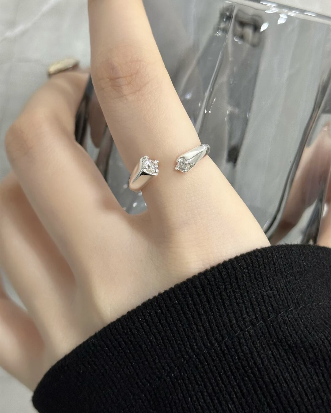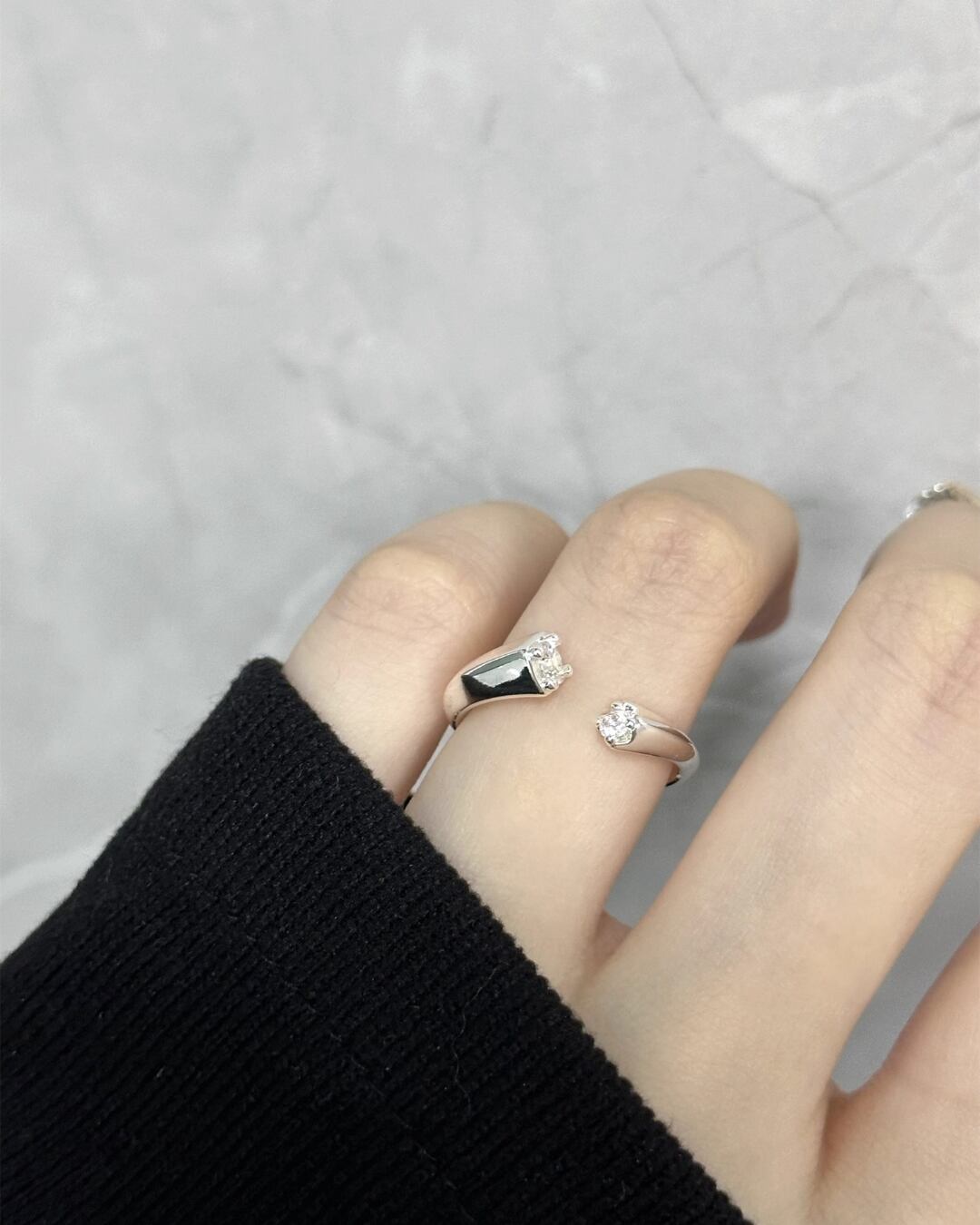 #ジルコニアリング #調整可能リング #シルバーアクセ #シンプルジュエリー #指先コーデ #韓国ファッション